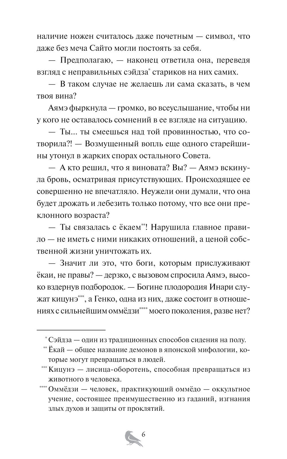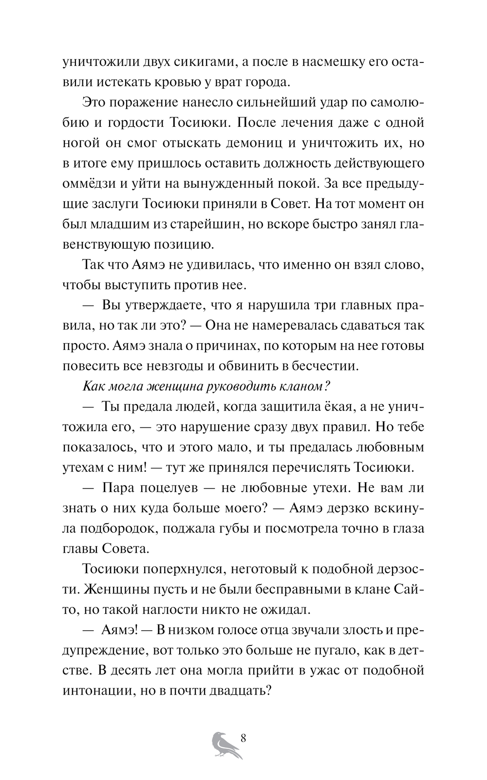 Аямэ Сайто всегда знала свое предназначение. Она оммёдзи. Ее долг – защищать людей от демонов даже ценой собственной жизни. Она слуга богов. С рождения обещана Небесам и однажды станет преданной помощницей Сусаноо. Она наследница клана. Бесправная и желающая изменить устои семьи, чтобы помочь тем, кто пострадал от власти старейшин.