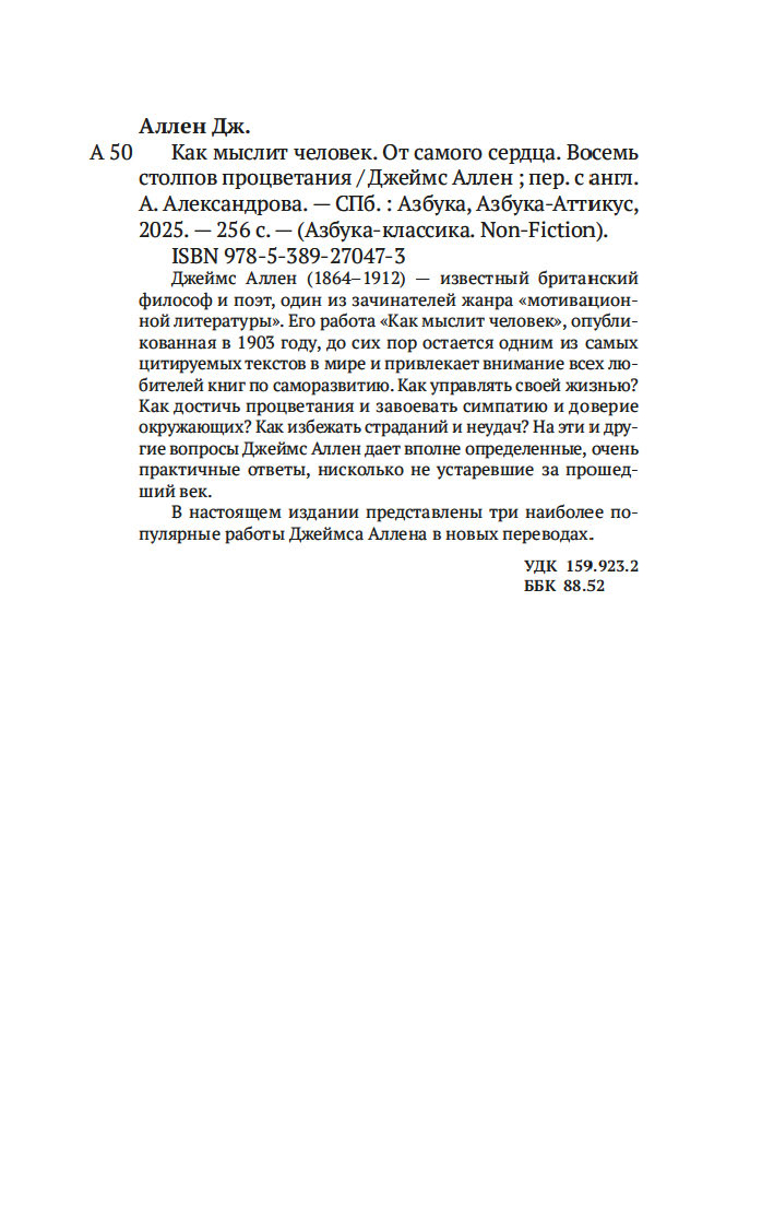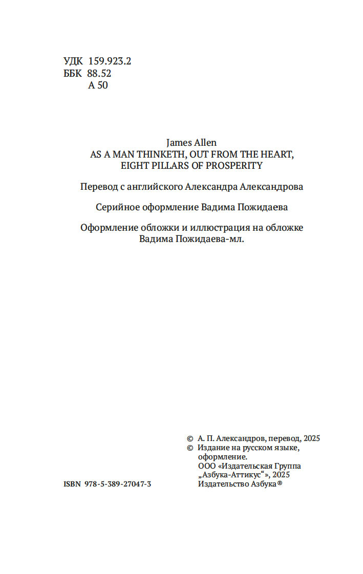 | Название в оригинале | S A Man Thinketh. Out From The Heart. Eight Pillars Of Prosperity |