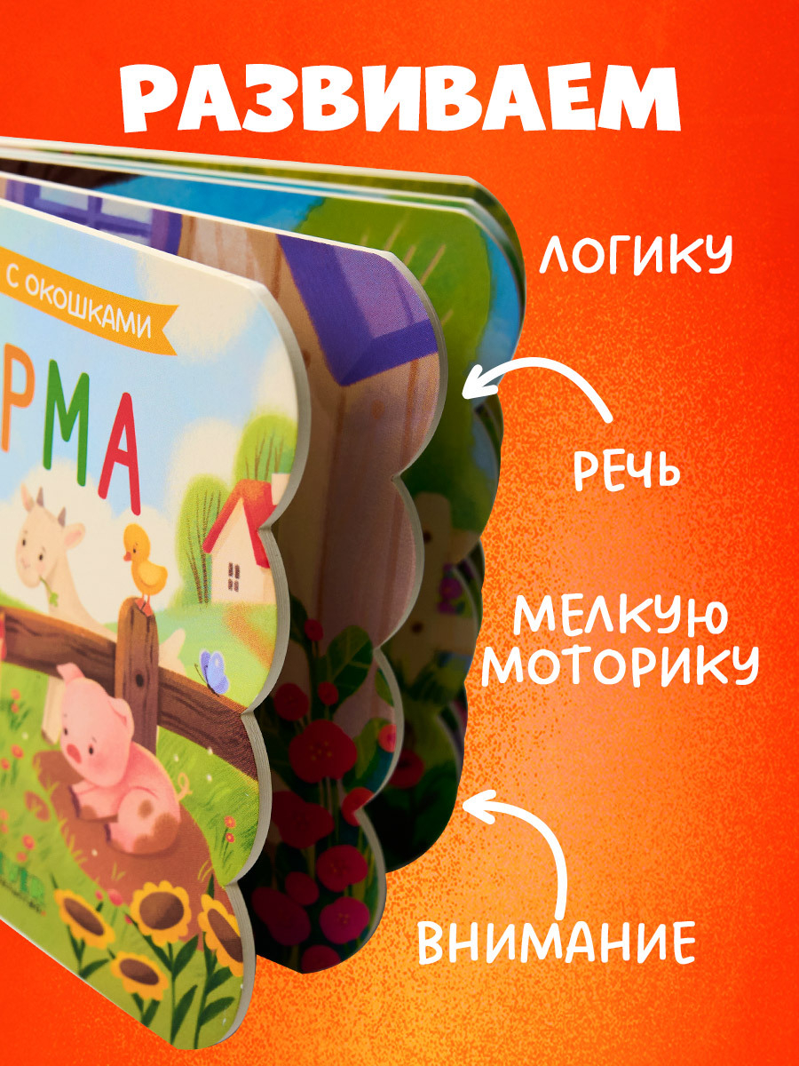 Книжка с окошками "Ферма" познакомит вашего ребенка с животными, которые живут на ферме, и поможет в развитии мелкой моторики, речи, логики, внимания. А створки из плотного картона превратят ваши занятия в веселье!