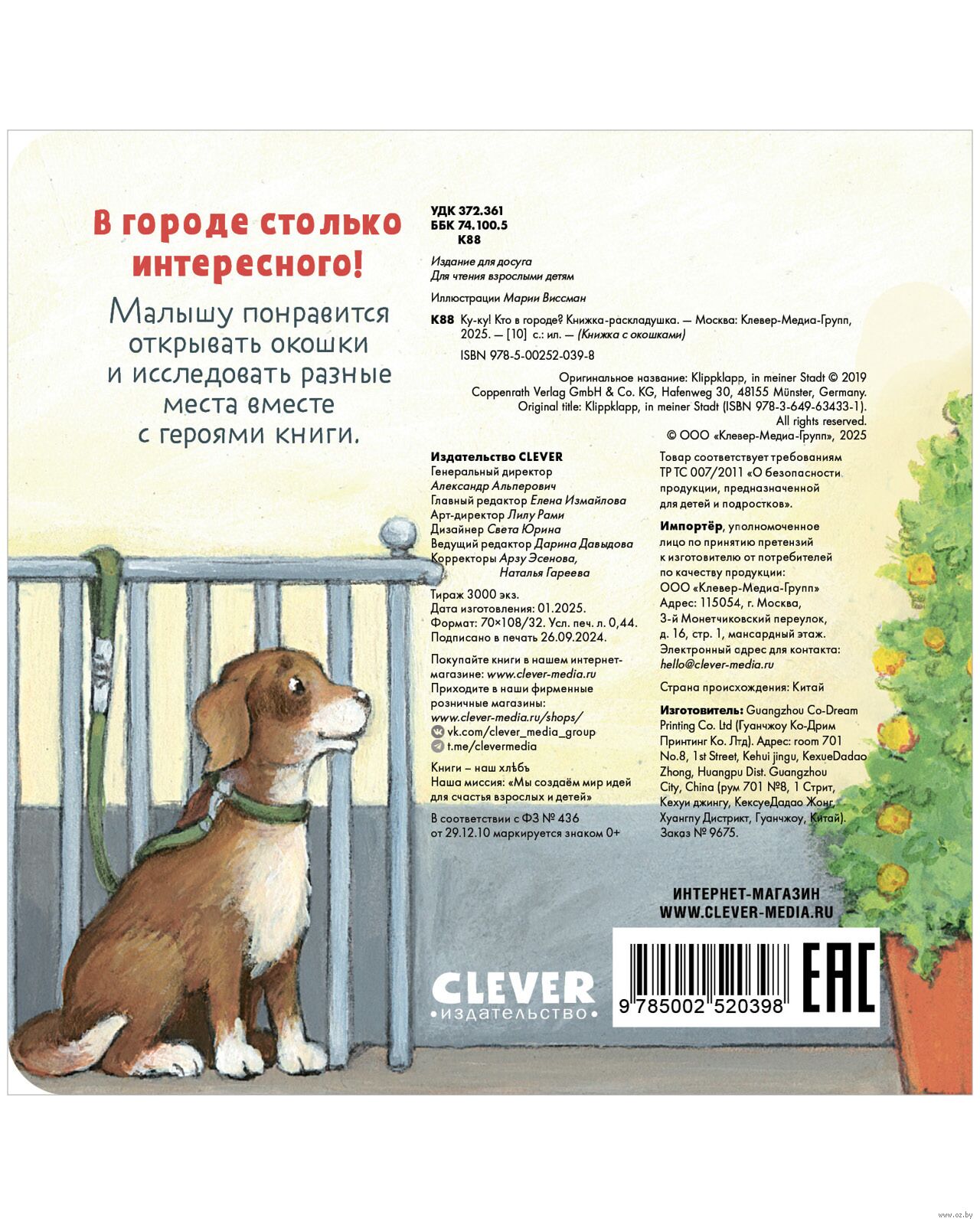 | Изготовитель | ООО Издательство "Клевер-Медиа-Групп". РФ, г. Москва, Пятницкая улица, дом 71/5, строение 2. Вход со 2-го Монетчиковского переулка, центральный подъезд, 4-й этаж. |