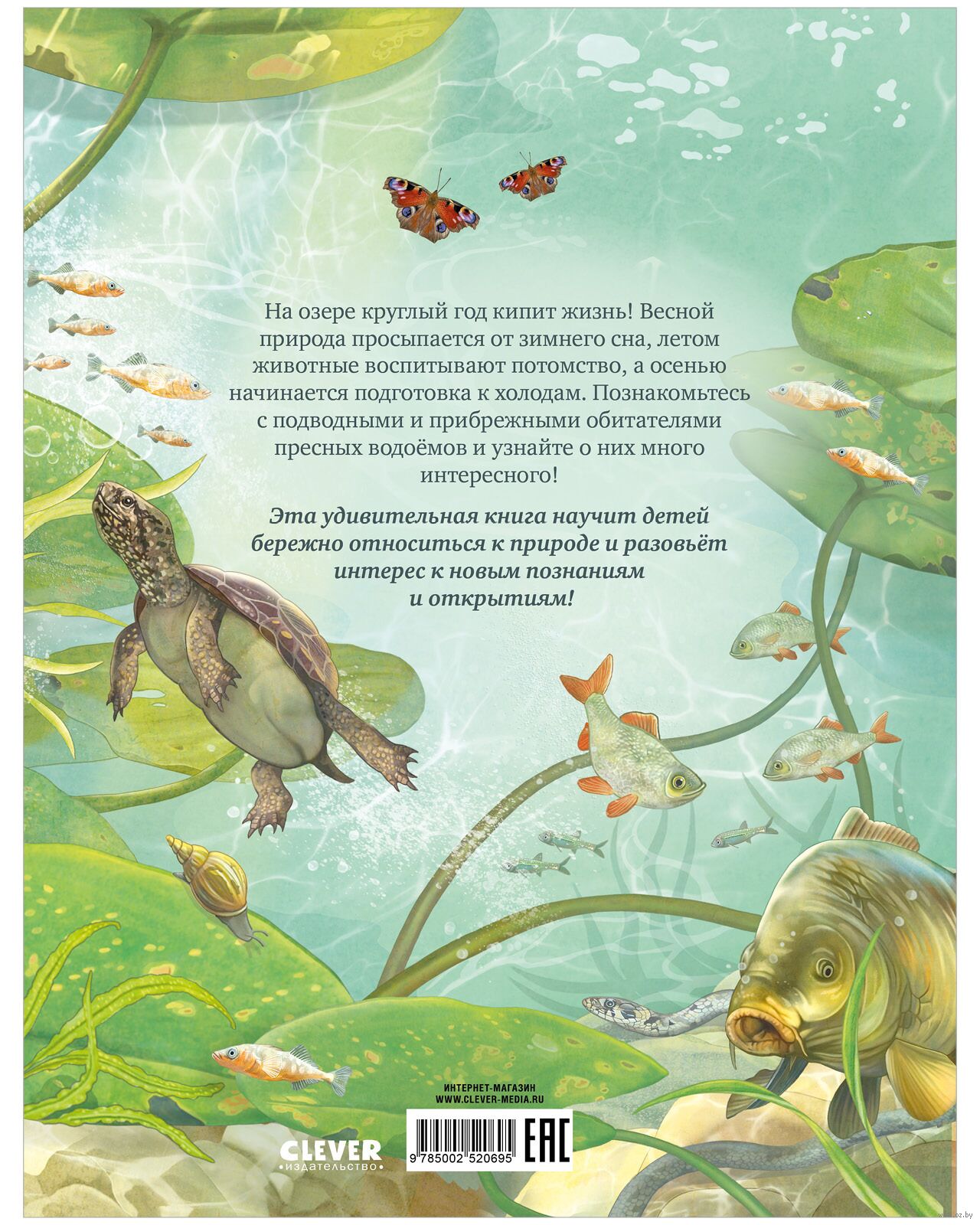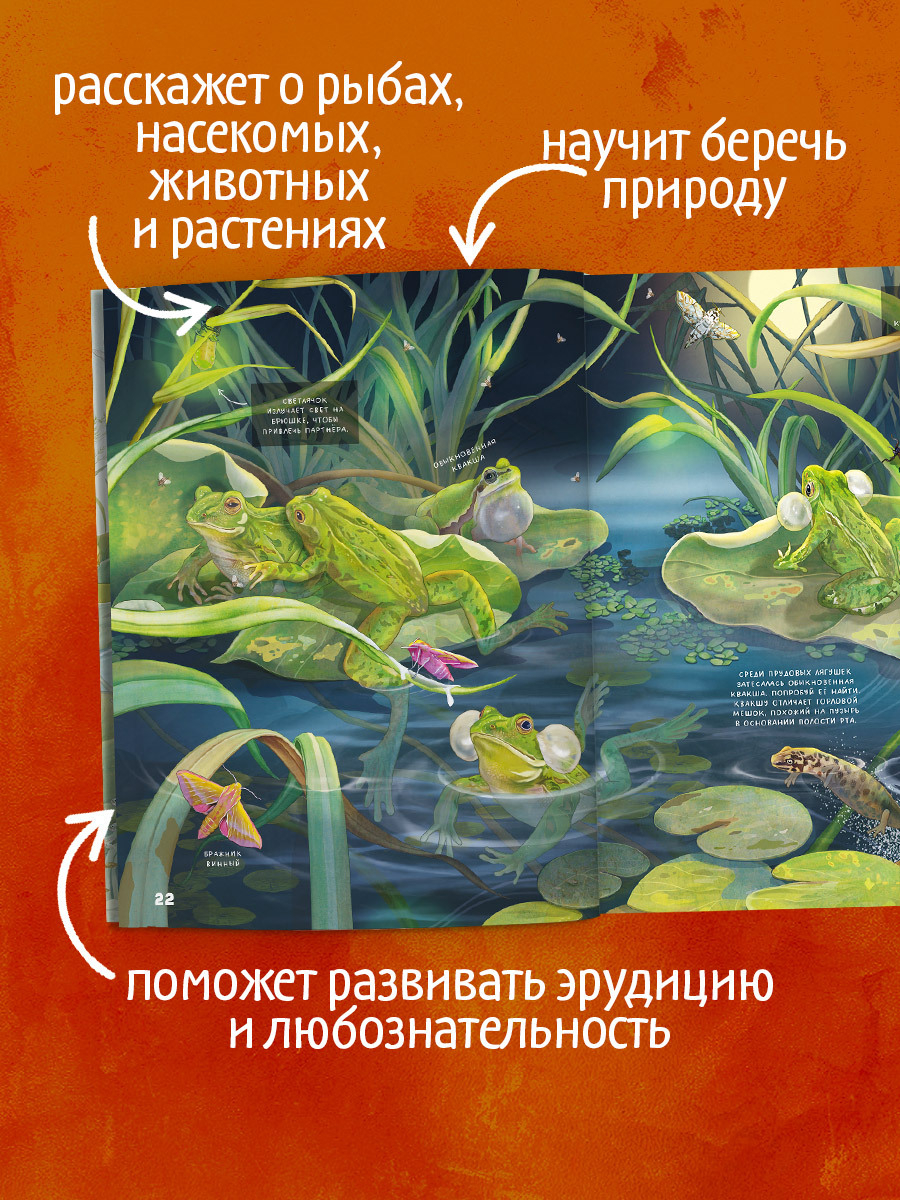 Красочная энциклопедия с большими иллюстрациями, которая расскажет о жизни водных и прибрежных обитателей и научит оберегать природу.