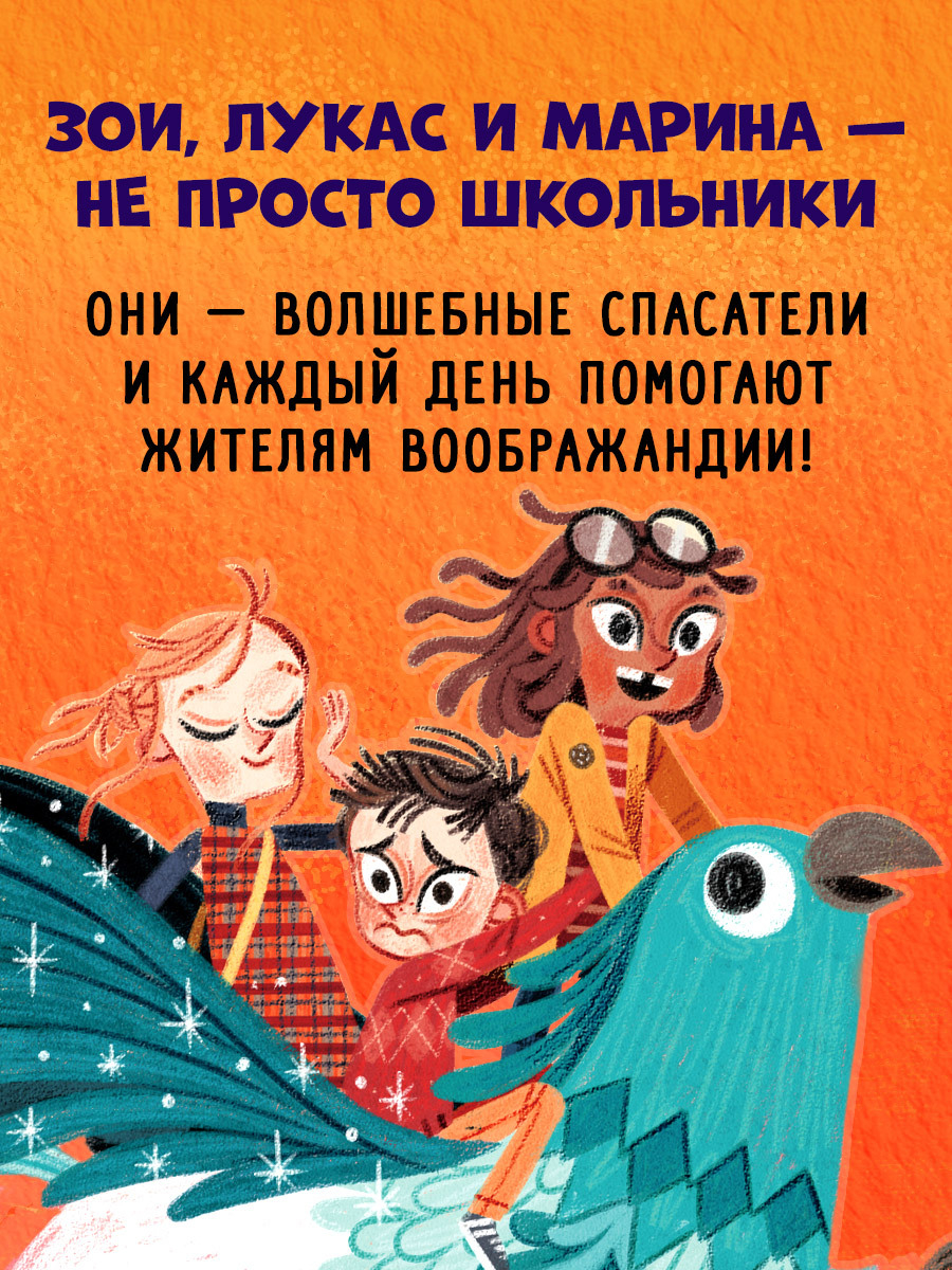 Марина, Лукас и Зои – не простые школьники, а волшебные спасатели, которые каждый день помогают жителям Воображандии. Но разве могут спасатели называться волшебными, если они не умеют колдовать? А чтобы научиться, нужны магические артефакты! Друзья решают добыть их, но для этого им придется отыскать школу волшебства, пройти невероятные испытания и найти свой уникальный дар. Справятся ли волшебные спасатели? Что нового они узнают о себе?