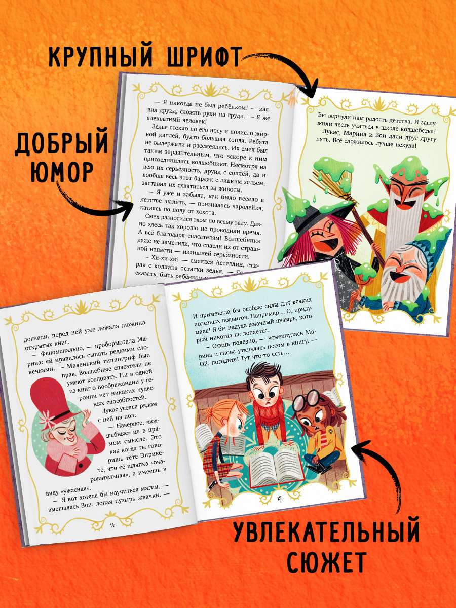 "Волшебные спасатели и школа волшебства" — третья книга про ребят, которые случайно нашли путь в сказочную страну. В ней есть все, чтобы знакомство ребенка с художественной литературой прошло увлекательно: приключения с элементами детектива, магия, добрый юмор, волшебные существа и опасности.