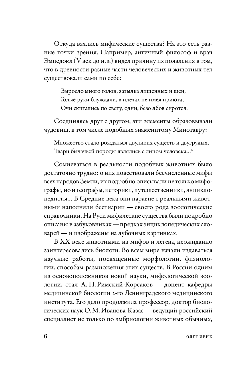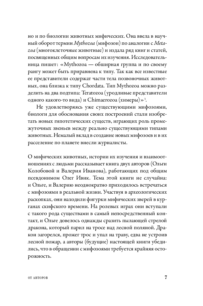 Но XX век неожиданно всколыхнул увлечение фантастическими существами, для которых биологи теперь придумали специальный термин – "мифозои". О мифозоях – древних и современных, об их взаимоотношениях с людьми и об истории их изучения рассказывает книга двух культурологов, работающих под общим псевдонимом Олег Ивик.