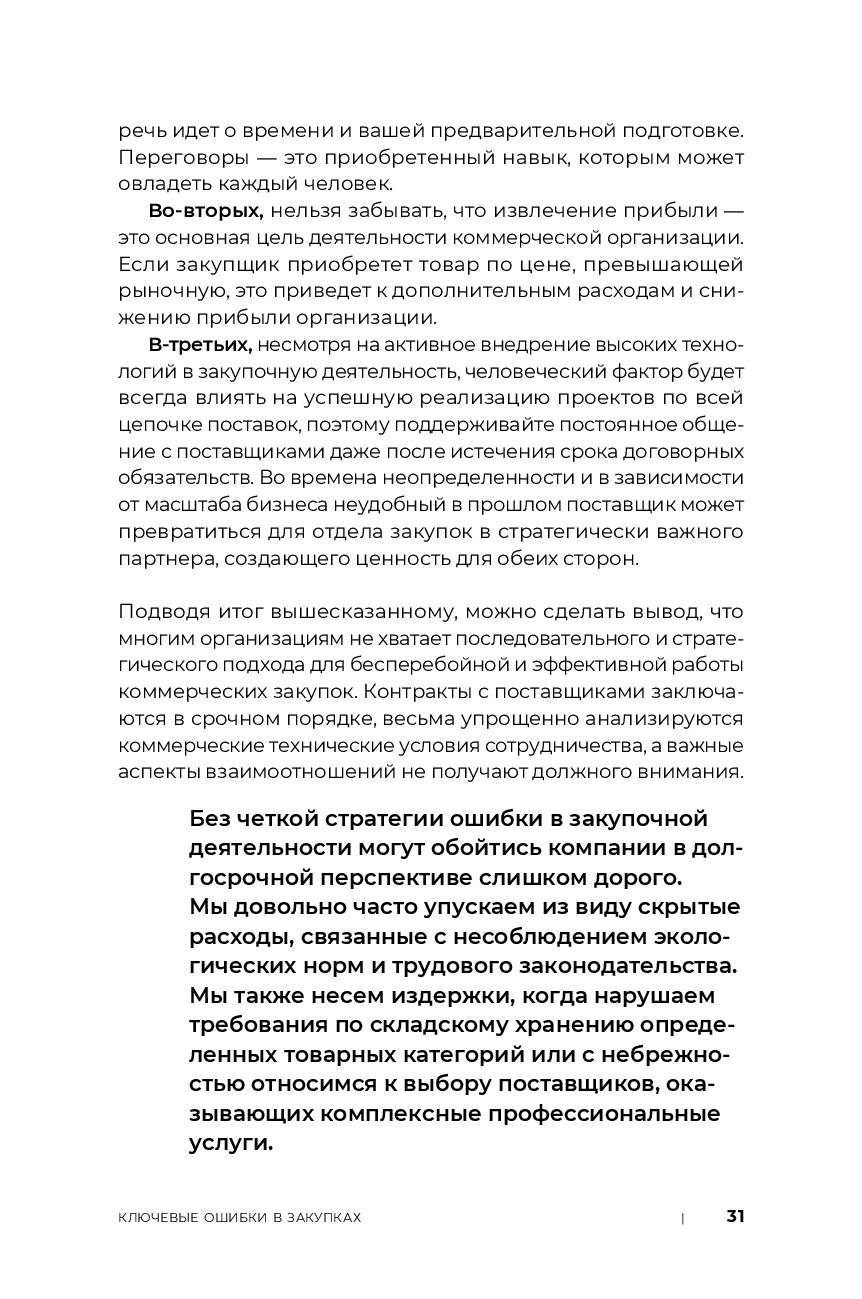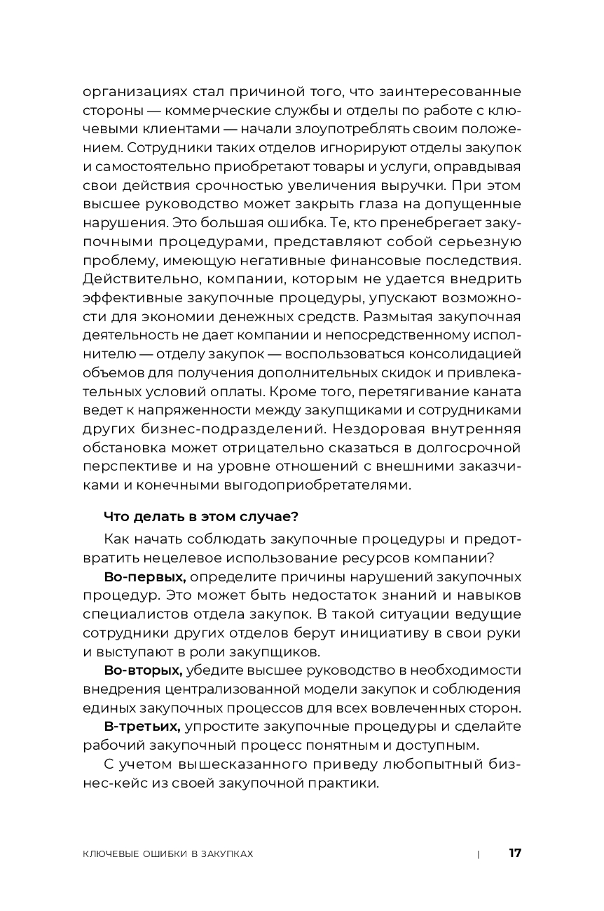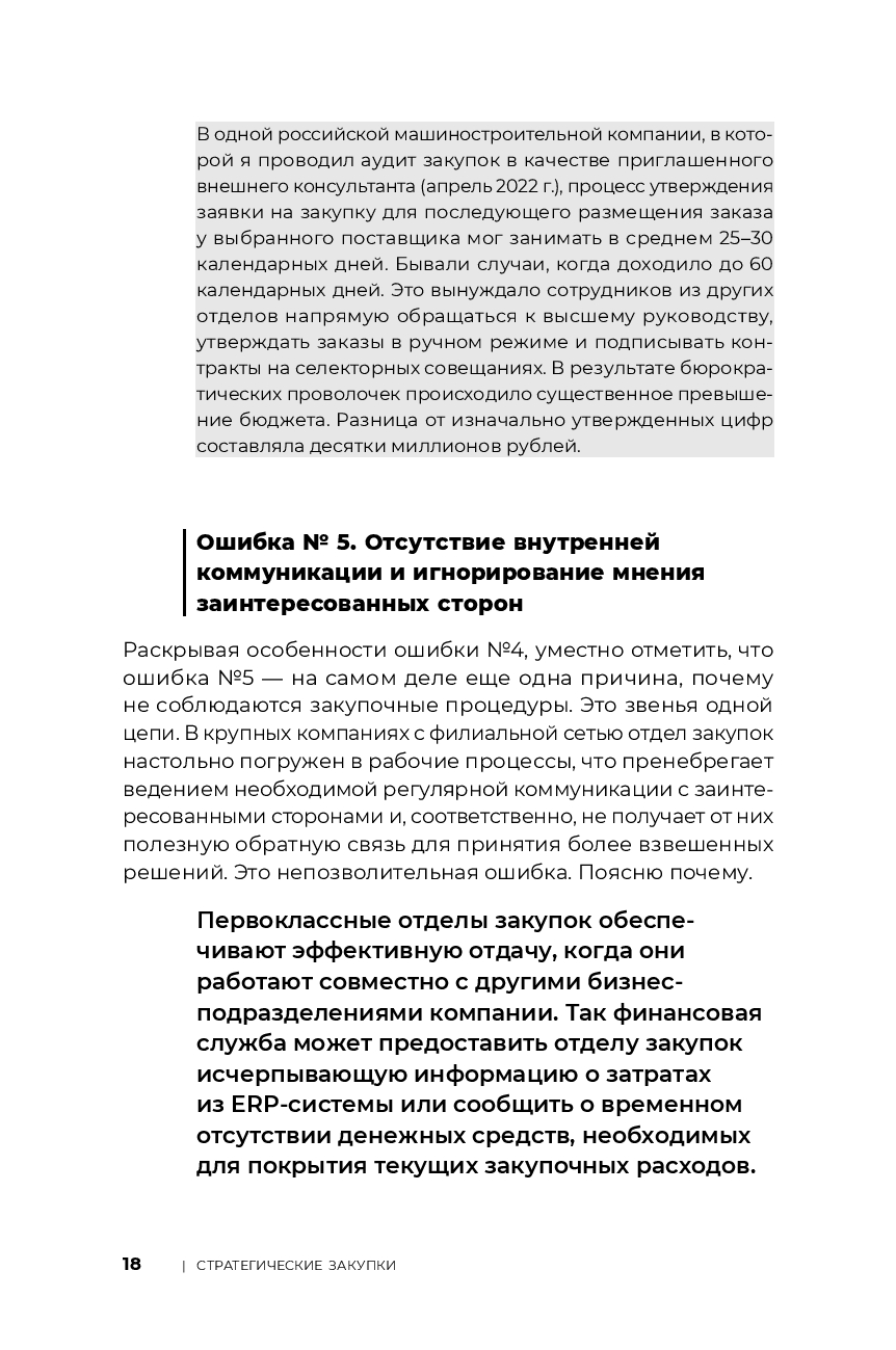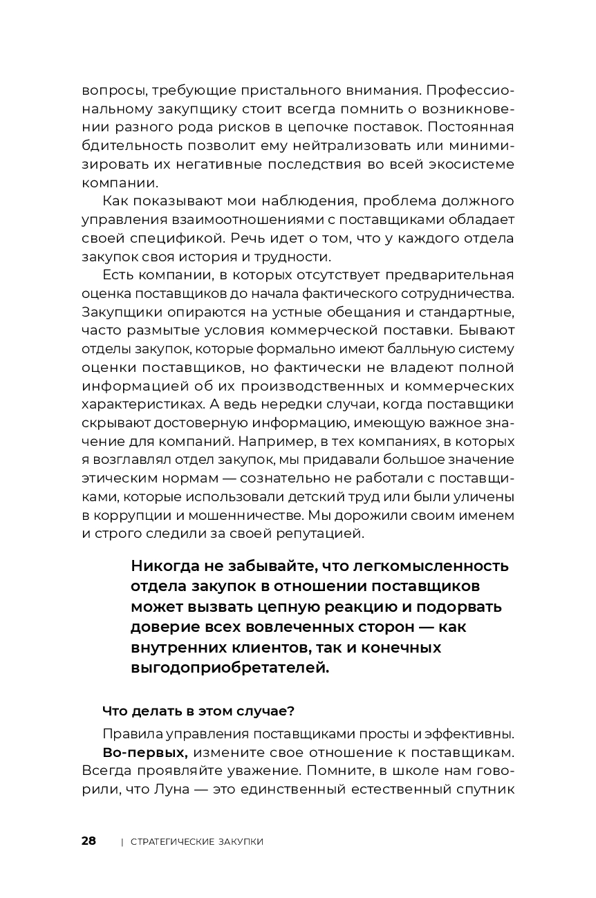 В книге приведены конкретные примеры, лучшие практики и кейсы, которые помогут вам адаптировать полученные знания к специфике вашей компании и повысить зрелость закупочной функции. Применяя эти принципы, вы сможете не только сократить затраты, но и стимулировать рост, улучшая внутренние процессы и взаимоотношения с партнерами.