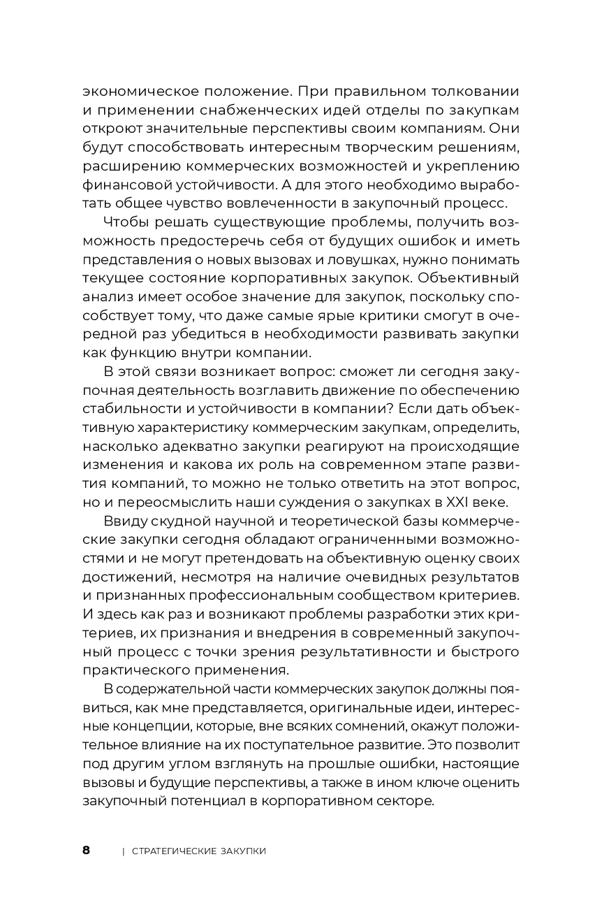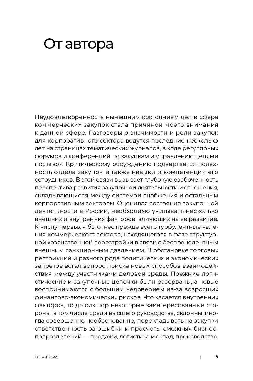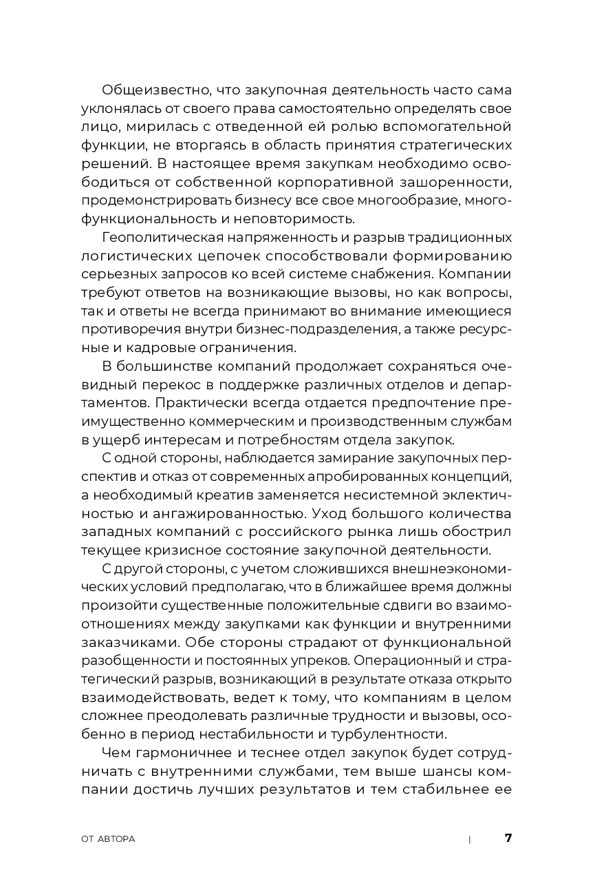 В своей новой книге, уже третьей по счету, Эдуард Трымбовецкий – эксперт по трансформации закупочной деятельности и профессиональный переговорщик – рассматривает ключевые аспекты эффективной закупочной деятельности и стратегии, которые превращают затраты в конкурентное преимущество для компании. Автор подчеркивает важность стратегического подхода к закупкам, который выходит за рамки простой экономии и направлен на создание ценности для бизнеса. В условиях растущей конкуренции и быстро меняющихся рынков успешные компании начинают воспринимать закупки не только как операционную функцию, но и как стратегический инструмент для обеспечения корпоративной устойчивости и долгосрочной конкурентоспособности.