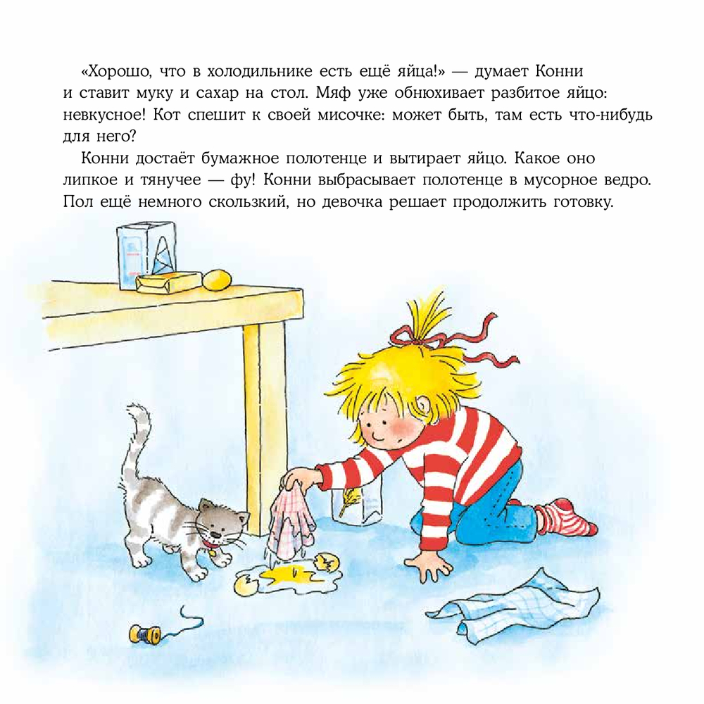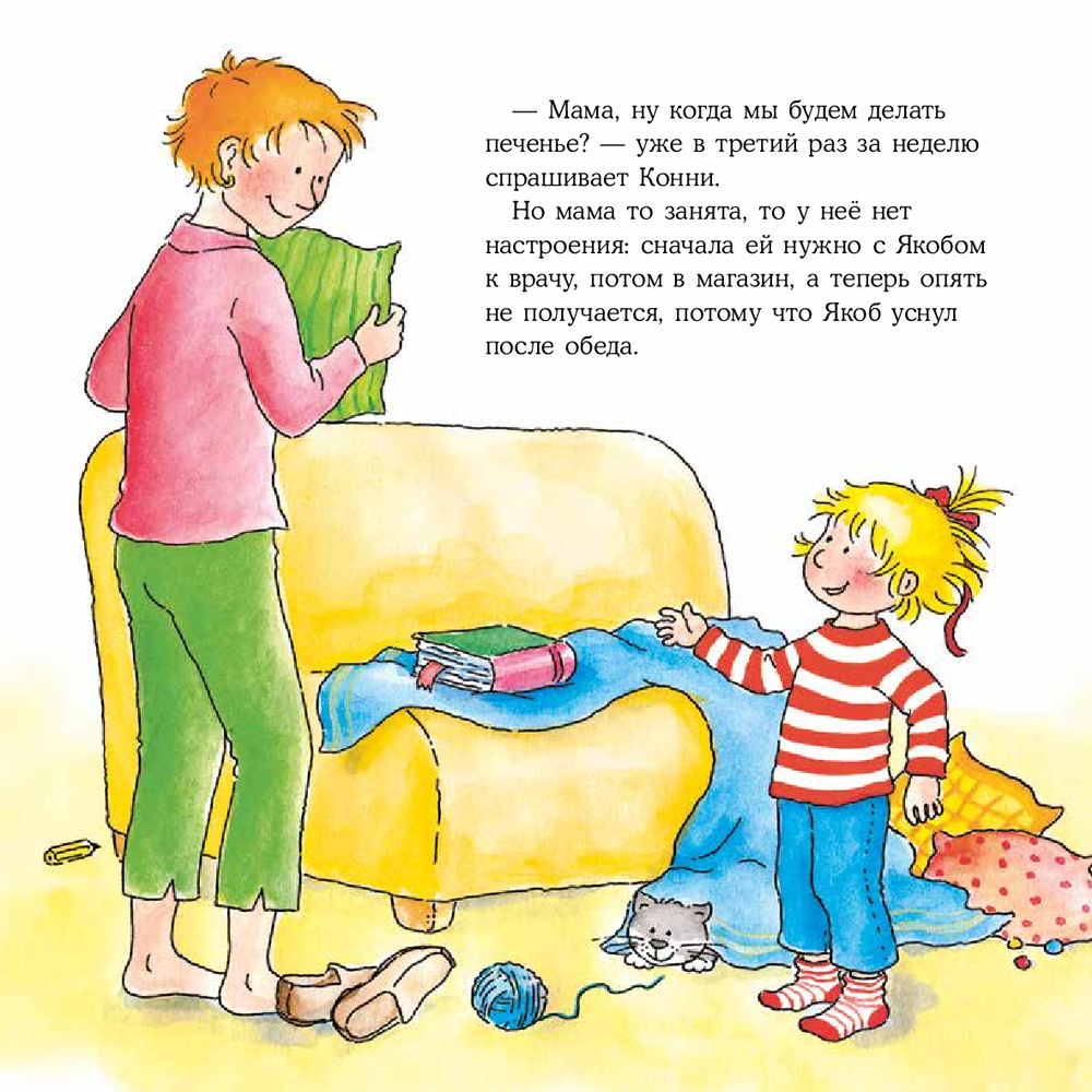 Конни решила сама приготовить печенье, не дожидаясь, пока мама ей в этом поможет. К счастью, у мамы всё-таки нашлось время, и печенье у них получилось вкусное и очень красивое.