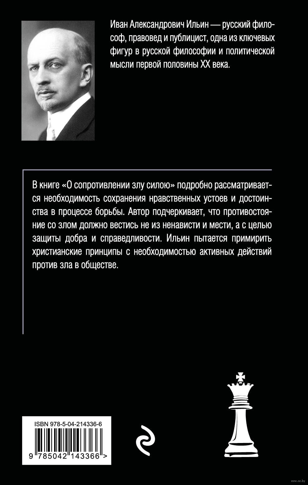 Книга "О сопротивлении злу силою" – труд, который поднимает вечные вопросы морали, справедливости и противостояния злу. В своем исследовании И. Ильин детально анализирует природу зла и его разрушительную силу. Он предлагает философские и практические аргументы, которые позволяют применение силы, в некоторых случаях, но отмечает, что оно должно быть оправдано. Он осуждает Л.Н. Толстого за призыв к внутреннему суду над собой. На основании этого он определяет это как отрицание заставления. Исследование включает темы самопринуждения и самопонуждения, которые определяют пороки человека.