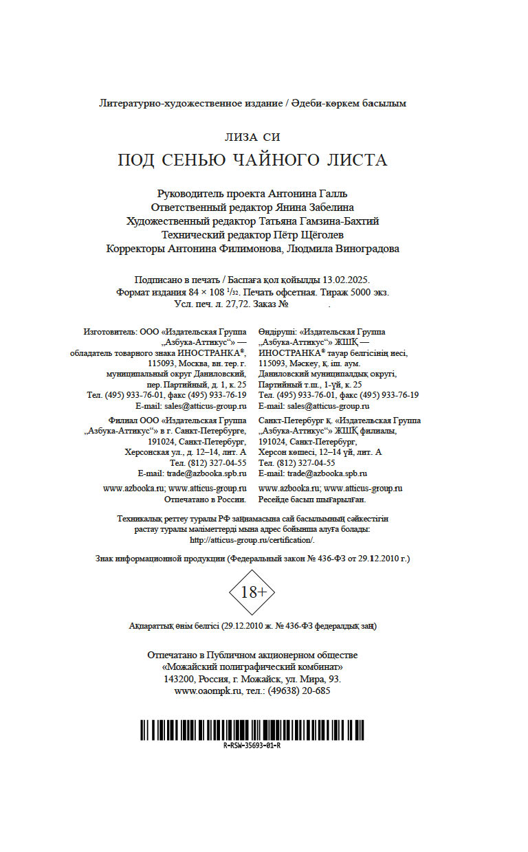 | Изготовитель | ООО "Издательство "Иностранка". 109017, РФ, г. Москва, ул. Пятницкая, 41 |