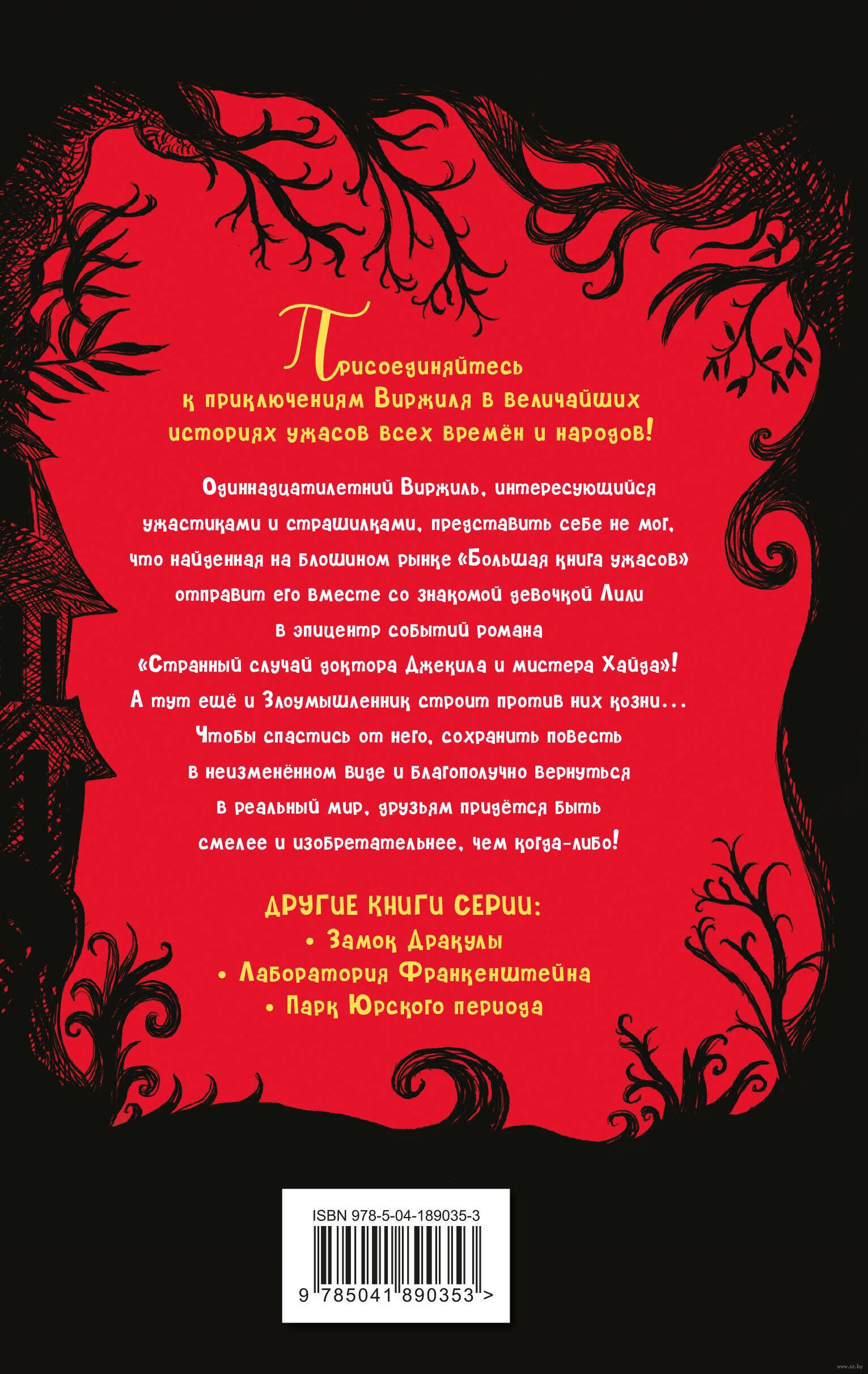 Одиннадцатилетний Виржиль, интересующийся ужастиками и страшилками, представить себе не мог, что найденная на блошином рынке "Большая книга ужасов" отправит его вместе со знакомой девочкой Лили в эпицентр событий романа "Странный случай доктора Джекила и мистера Хайда"! А тут ещё и Злоумышленник строит против них козни… Чтобы спастись от него, сохранить повесть в неизменённом виде и благополучно вернуться в реальный мир, друзьям придётся быть смелее и изобретательнее, чем когда-либо!
