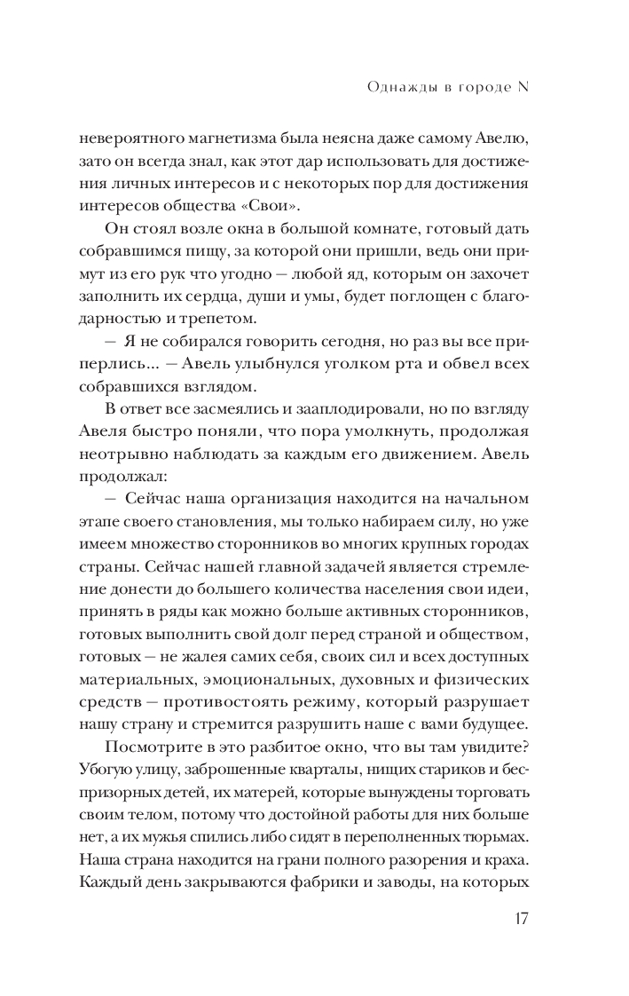 Авель не сомневается в своем успехе. Он легко завоевывает всеобщую любовь, восхищает харизмой, свободно поддерживает диалог с незнакомцами… а внутри него царят презрение и ненависть, порождающие желание уничтожить всех недостойных представителей общества.