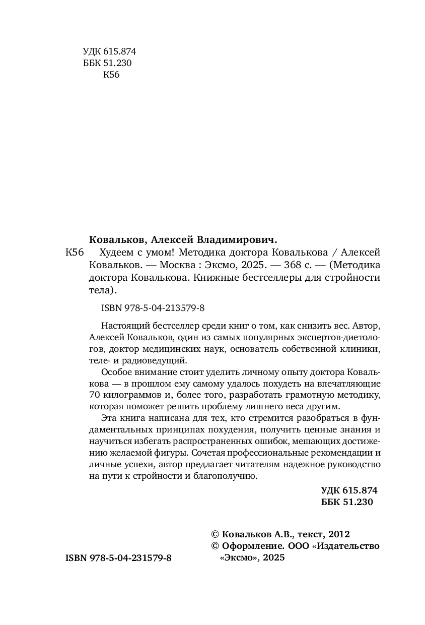 | Серия | Методика доктора Ковалькова. Книжные бестселлеры для стройности тела |