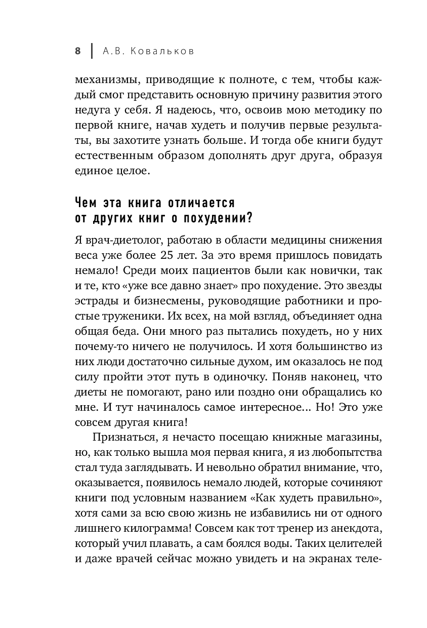 Настоящий бестселлер среди книг о том, как снизить вес. Автор, Алексей Ковальков, один из самых популярных экспертов-диетологов, доктор медицинских наук, основатель собственной клиники, теле- и радиоведущий.