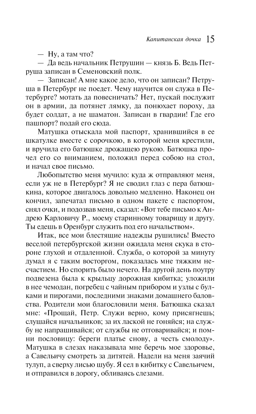 Юный дворянин Петр Гринев по воле отца вместо столичного Петербурга отправляется служить в крепость под Оренбургом.
