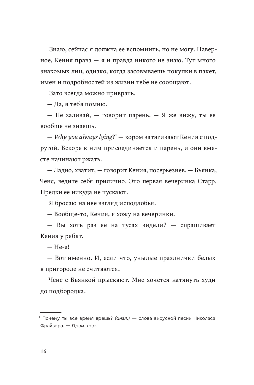 Все хотят выяснить одно: что на самом деле случилось той ночью? Старр – единственная, кто знает ответ, и теперь в ее руках не только собственная жизнь, но и судьбы других людей.