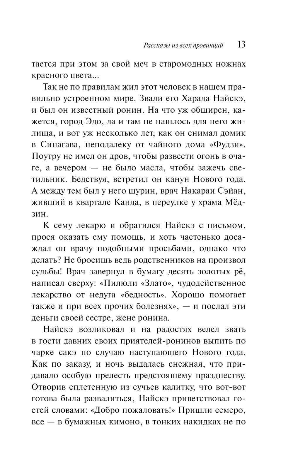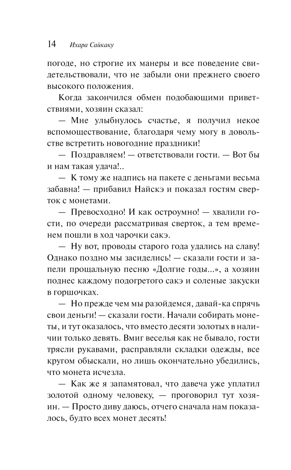 Жанровый диапазон творчества Сайкаку необычайно широк. В этой книге читатель найдет разные по характеру произведения – любовные, бытовые, волшебно-фантастические, судебные и другие. Ирония, сарказм, пародийный гротеск – излюбленные приемы автора, но в смехе его слышна печаль о превратности жизни и человеческой судьбы.