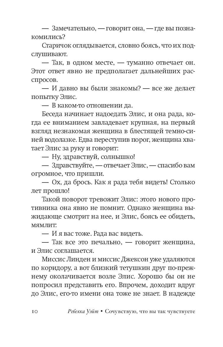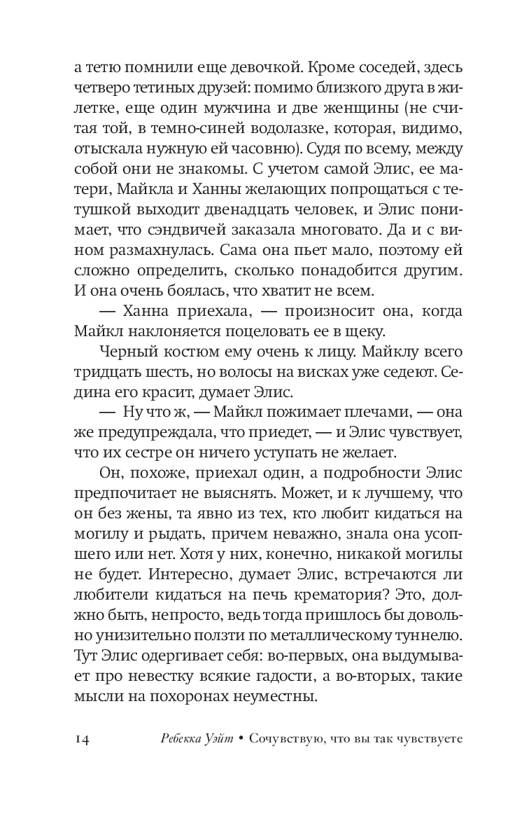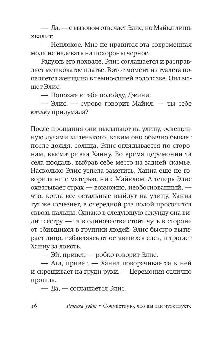 Умный и тонкий роман о семье, о близости, о том, что можно сколько угодно искать себя или бежать от себя, но ничего не добьешься, пока не остановишься и не посмотришь в глаза тем, кто всегда был рядом. "Сочувствую, что вы так чувствуете" – трагедия, которая смешнее любой комедии.