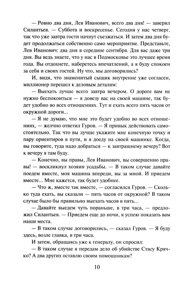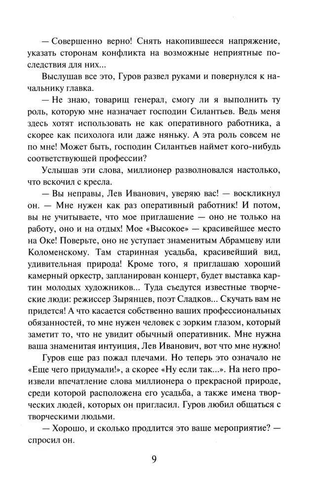 Полковник МВД Лев Гуров получает приглашение на торжественный ужин от известного российского олигарха. Ожидается, что в усадьбу миллионера съедутся крупнейшие бизнесмены, художники и музыканты – весь цвет общества. Вечер обещает быть незабываемым… Неожиданно в разгар праздника одна из дам заявляет, что у нее пропали фамильные драгоценности. Одновременно исчезает сотрудник персонала, обслуживающий банкет. Неужели произошла банальная кража? Гуров начинает расследование и вскоре на берегу реки обнаруживает труп пропавшего слуги. Но драгоценностей при нем нет… Сыщик понимает, что произошло убийство, и это только часть преступного замысла. Что еще придумает злодей, оставаясь на свободе?..