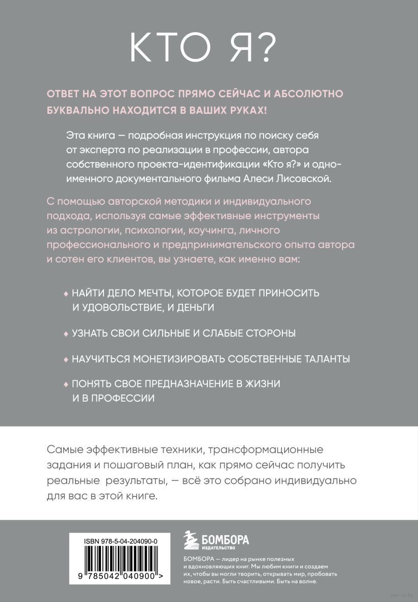 Главной задачей автора в работе над книгой стало создание для каждого из читателей индивидуальной инструкции к поиску ответа на вопрос "КТО Я?" и, как следствие, к профессиональной реализации и деньгам.