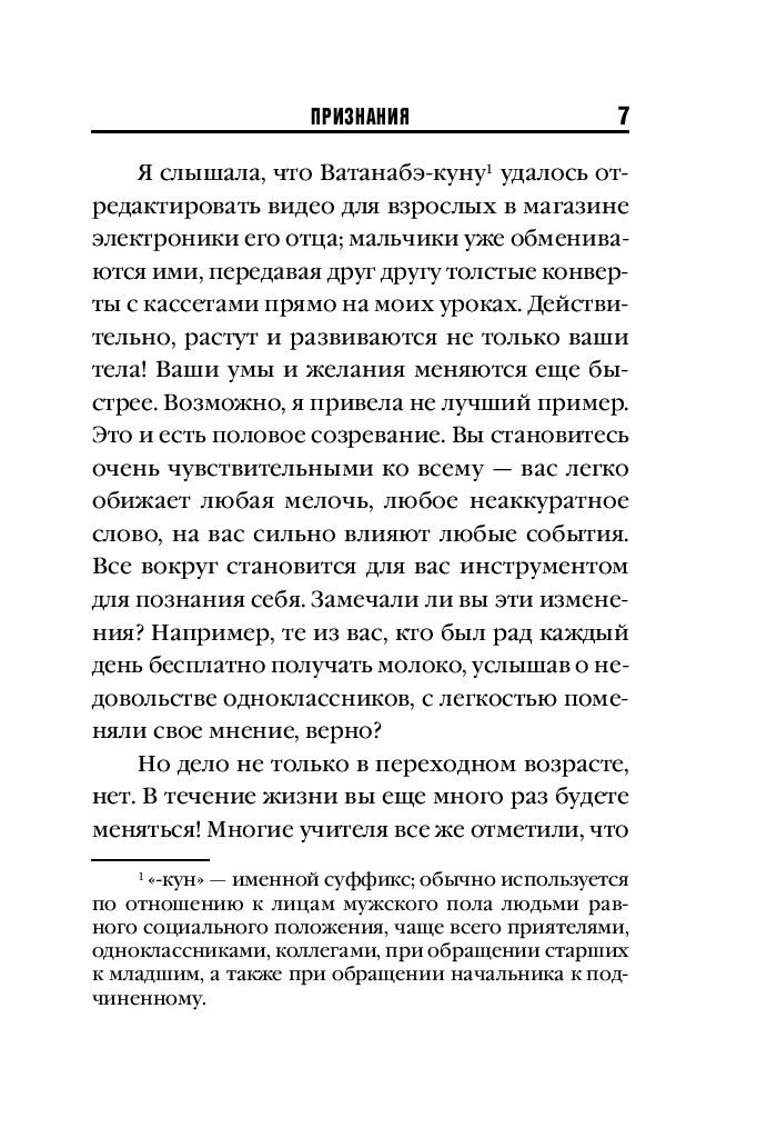 Наступает последний день семестра – и последний день Юко на работе. Она собирает свой класс и рассказывает детям правду о том, что случилось. Смерть ее дочери – не случайность. Девочка была убита двумя учениками из этого класса. Юко знает об этом – и сегодня преподаст им последний урок. Урок поистине дьявольской мести...