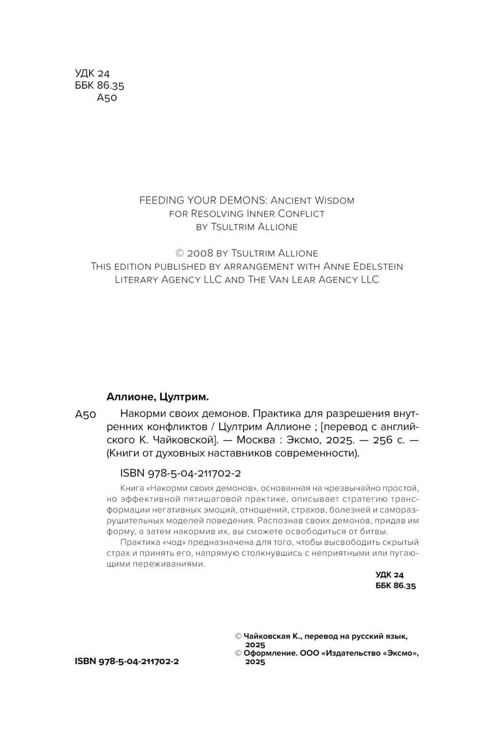 | Название в оригинале | FEEDING YOUR DEMONS: Ancient Wisdom for Resolving Inner Conflict |