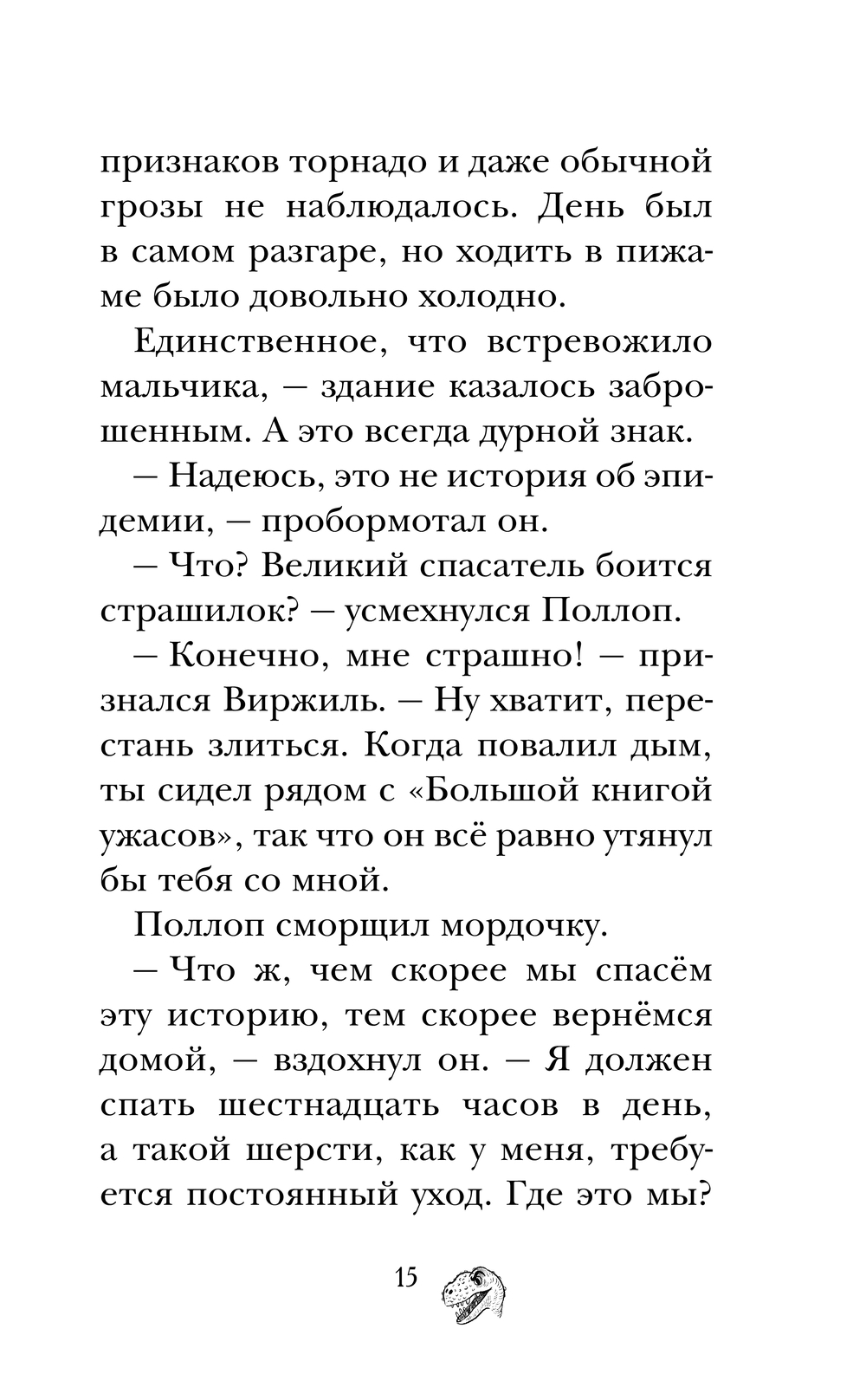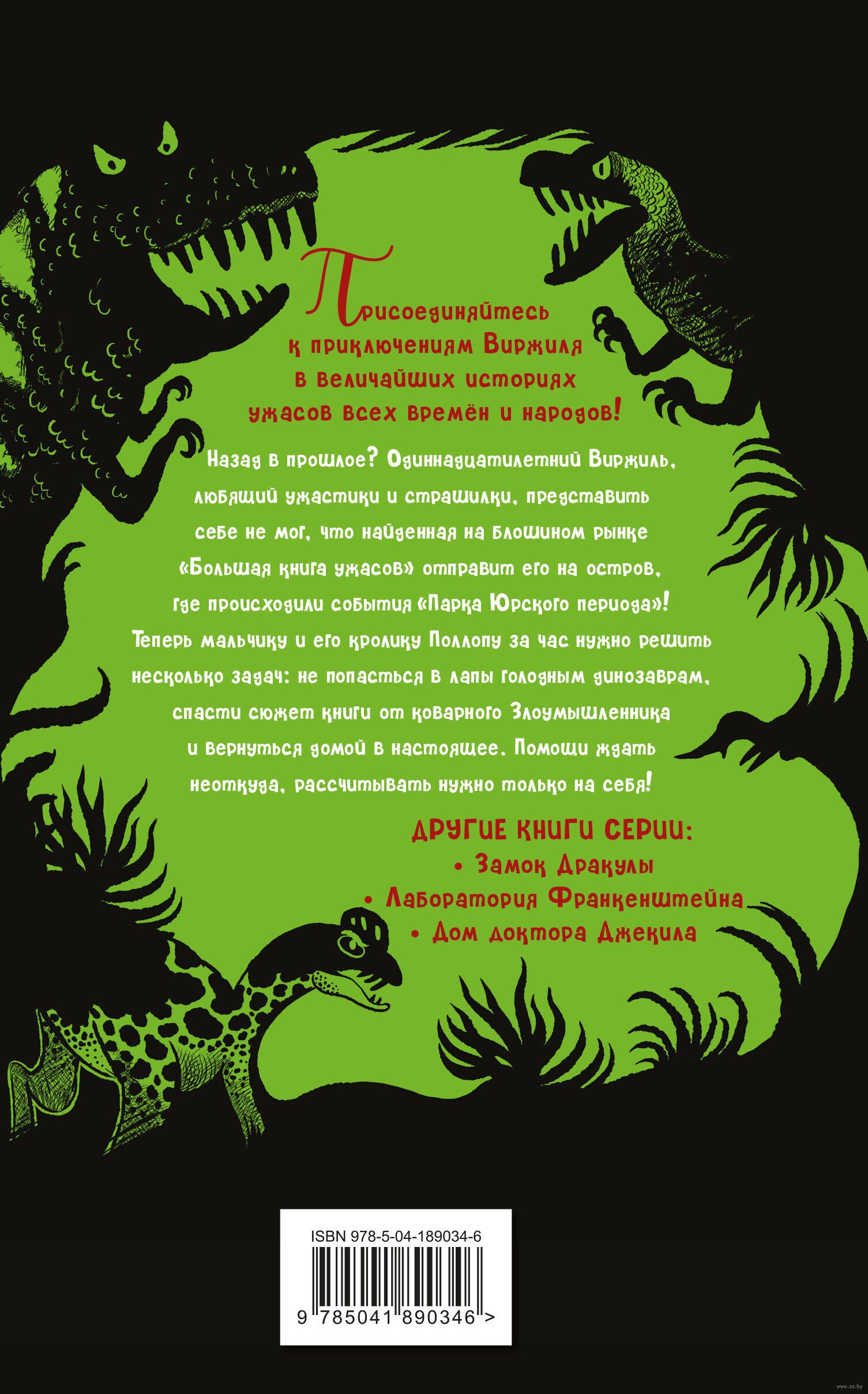 Назад в прошлое? Одиннадцатилетний Виржиль, интересующийся ужастиками и страшилками, представить себе не мог, что найденная на блошином рынке "Большая книга ужасов" отправит его на остров, где происходили события романа и фильма "Парк Юрского периода"! Теперь мальчику и его кролику Поллопу за целый час нужно решить несколько задач: не попасться в лапы голодным динозаврам, спасти сюжет книги от коварного Злоумышленника и вернуться домой в настоящее. Помощи ждать, как всегда, неоткуда, рассчитывать нужно только на себя!