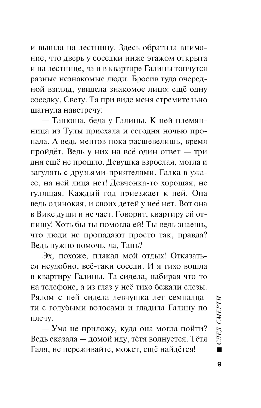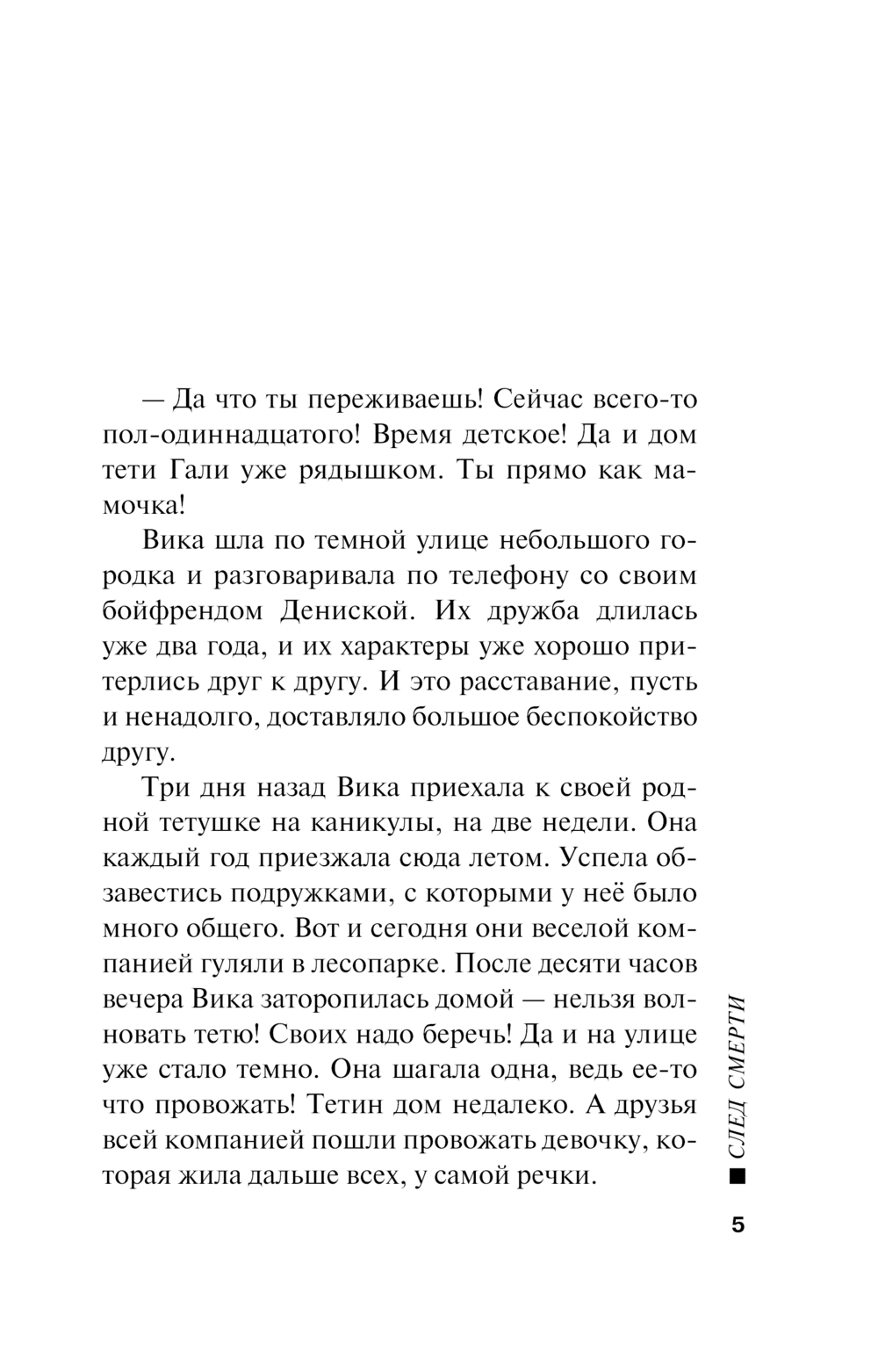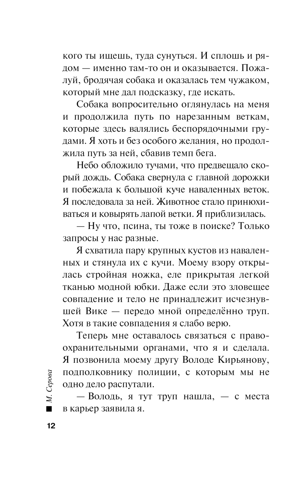 К детективу Татьяне Ивановой обращаются подруги пропавшей девушки Вики. Она приехала в Тарасов погостить, но внезапно исчезла. Зацепок немного, но Иванова берется за дело. Когда детектив выходит на свою обычную пробежку, она внезапно обнаруживает труп Вики. Но на этом череда смертей не заканчивается: подругу Вики убивают почти на глазах у Татьяны, да и сама она чуть было не стала жертвой. Кому помешали молодые девушки? И как остановить таинственного убийцу?