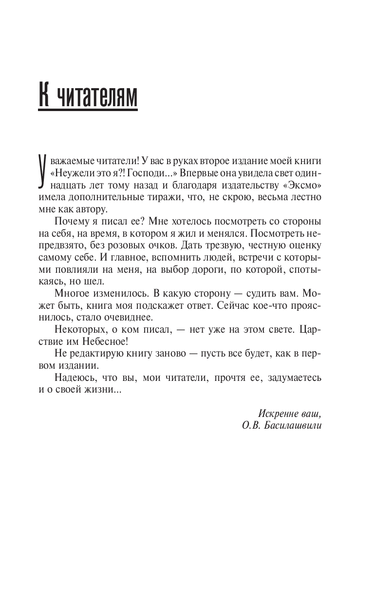 Список сыгранных Олегом Басилашвили ролей впечатляет: были среди его героев врачи, директора, рабочие, профессора, генералы, чиновники, инженеры, встречались откровенные мерзавцы и утонченно интеллигентные люди. Актер умеет воплощать любой образ, примерять на себя любую маску, а в жизни остается спокойным, ласковым, очень любящим человеком. В его судьбе совершенно удивительным образом перемешались: грузинская родословная, старомосковское происхождение, мхатовская школа и академическая твердыня Большого драматического театра имени Г.А. Товстоногова.