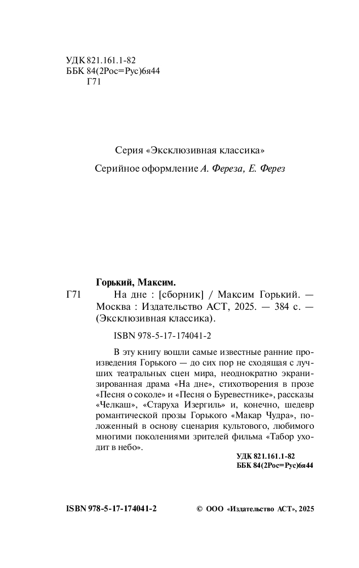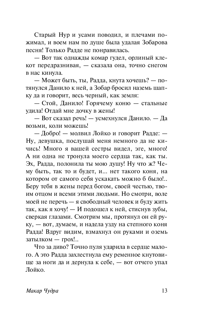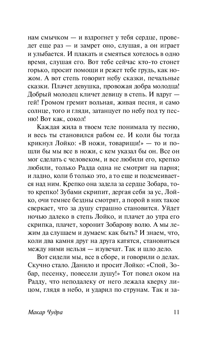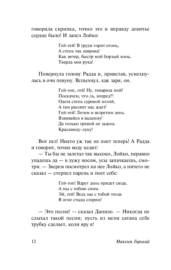 В эту книгу вошли самые известные ранние произведения Горького – до сих пор не сходящая с лучших театральных сцен мира, неоднократно экранизированная драма "На дне", стихотворения в прозе "Песня о соколе" и "Песня о Буревестнике", рассказы "Челкаш", "Старуха Изергиль" и, конечно, шедевр романтической прозы Горького "Макар Чудра", положенный в основу сценария культового, любимого многими поколениями зрителей фильма "Табор уходит в небо".