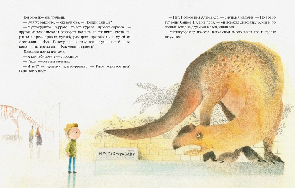 Детей, которые пришли в музей на экскурсию, будет ждать большой сюрприз – динозавры стали их тёзками! Может, им тоже стоит сменить имена? В конце концов в музее всё перемешается: дети, динозавры… И только Петька придумает, что надо делать. Но если он не мальчик и не динозавр, то кто?