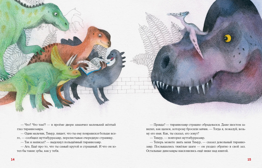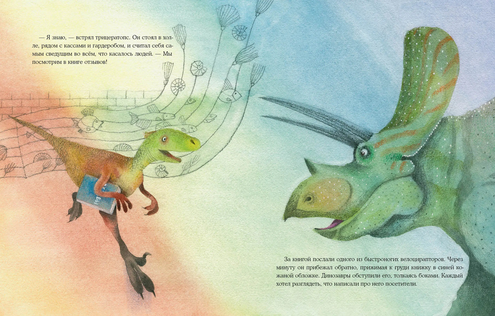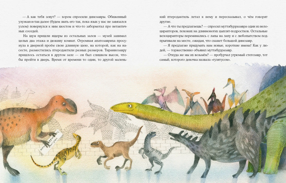 Динозавры, обитающие в палеонтологическом музее, решили, что их имена слишком сложные. Посетители путаются, да и сами динозавры то и дело допускают ошибки. Откуда же взять новые имена? Конечно, из книги отзывов!