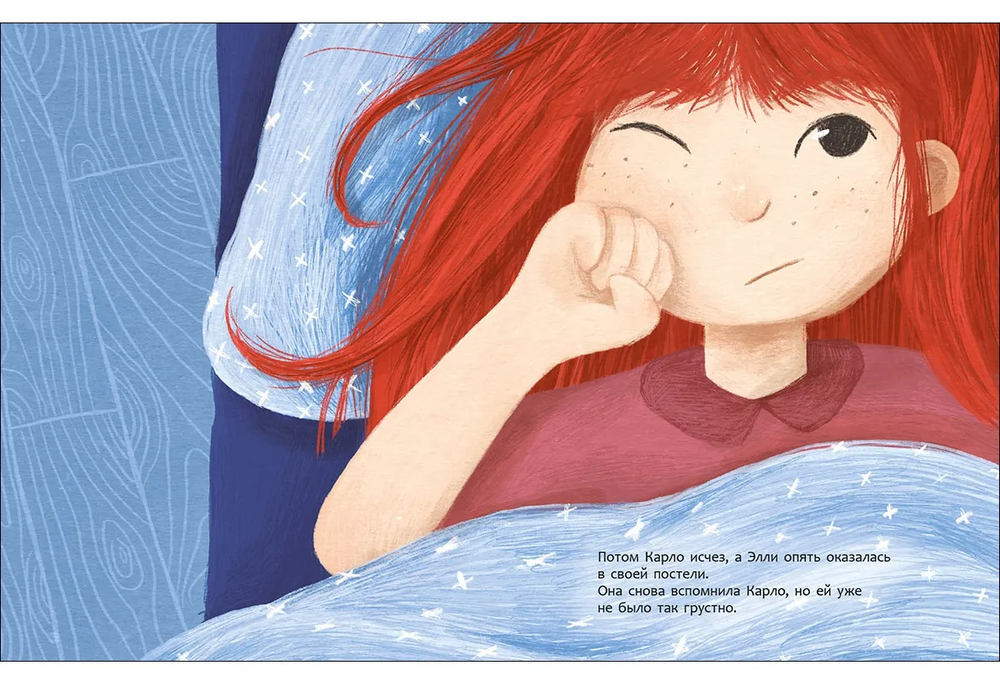 Элли и её пёс Карло были неразлучны. Девочка не могла представить себе жизни без него. Но однажды она пришла из школы, и мама сказала, что Карло ушёл навсегда. Элли была безутешна. Как перенести разлуку с лучшим другом? К счастью, в мечтах всё возможно. И Элли с Карло пережили вместе ещё одно последнее приключение.