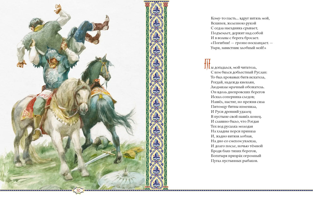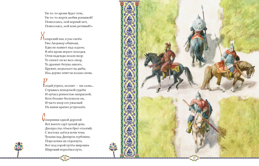 В этом произведении переплетаются героический эпос и лирические зарисовки, фольклорные мотивы и авторская ирония, складываясь в неповторимый многоцветный узор, а чарующая музыка пушкинских стихов завораживает читателя с первых строк. "Дела давно минувших дней, преданья старины глубокой" оживают в иллюстрациях художника Анатолия Зиновьевича Иткина.