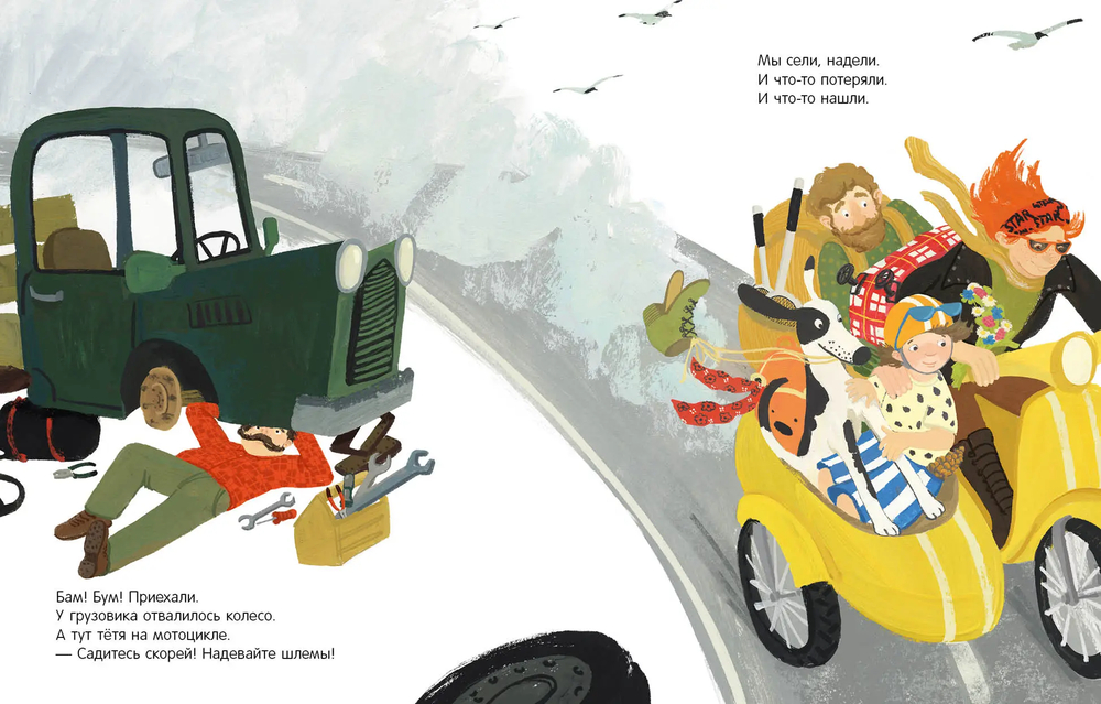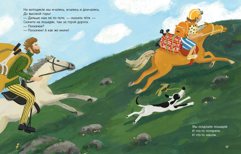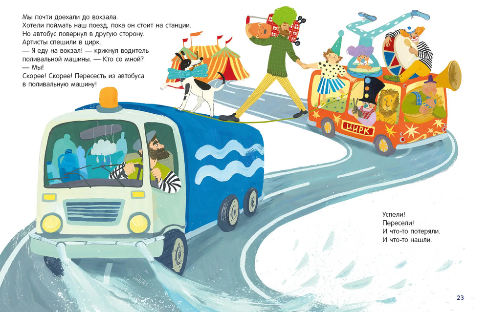 Перед вами весёлая история о том, как папа с дочкой догоняют свой поезд. Они опоздали совсем чуть-чуть, но не унывают и пытаются его догнать на такси, на грузовике, на мотоцикле, на самокатах и даже на лошадях! И каждый раз их ждут новые приключения. А если в дороге что-то теряется – не беда, ведь находки гораздо интереснее потерь!