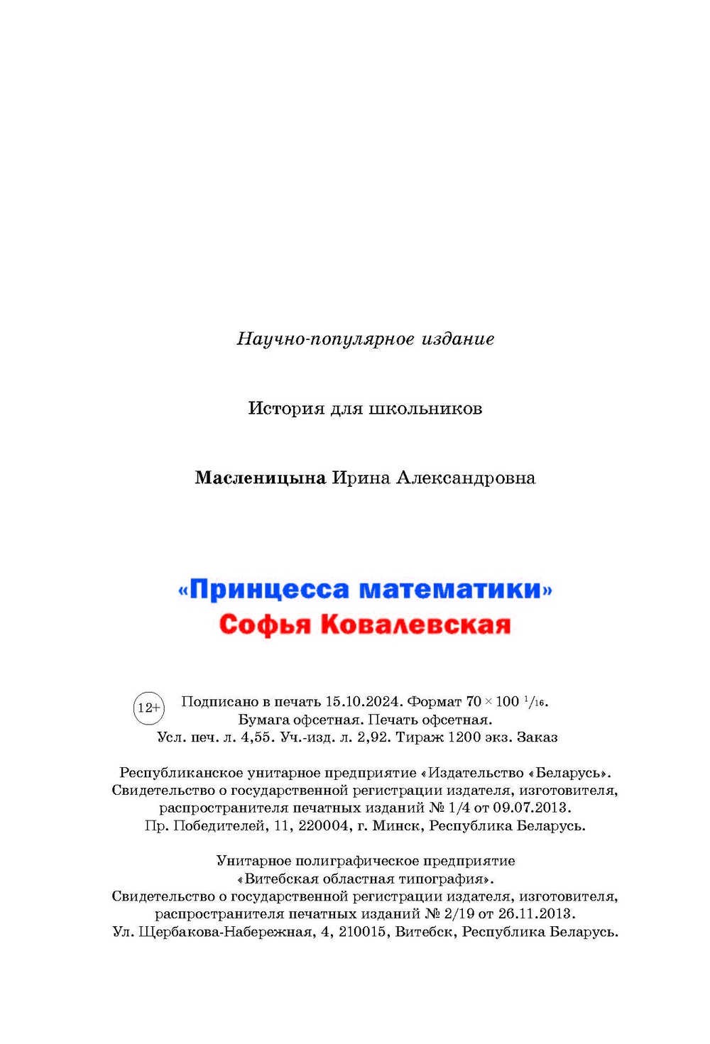 | Изготовитель | РУП «Издательство «Беларусь». РБ, г. Минск, проспект Победителей, 11, этаж 7 |