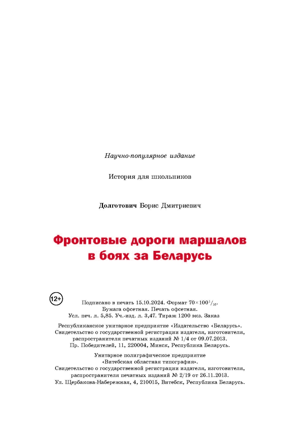 Издание адресовано учащимся учреждений общего среднего образования, а также тем, кто интересуется военной историей Беларуси.