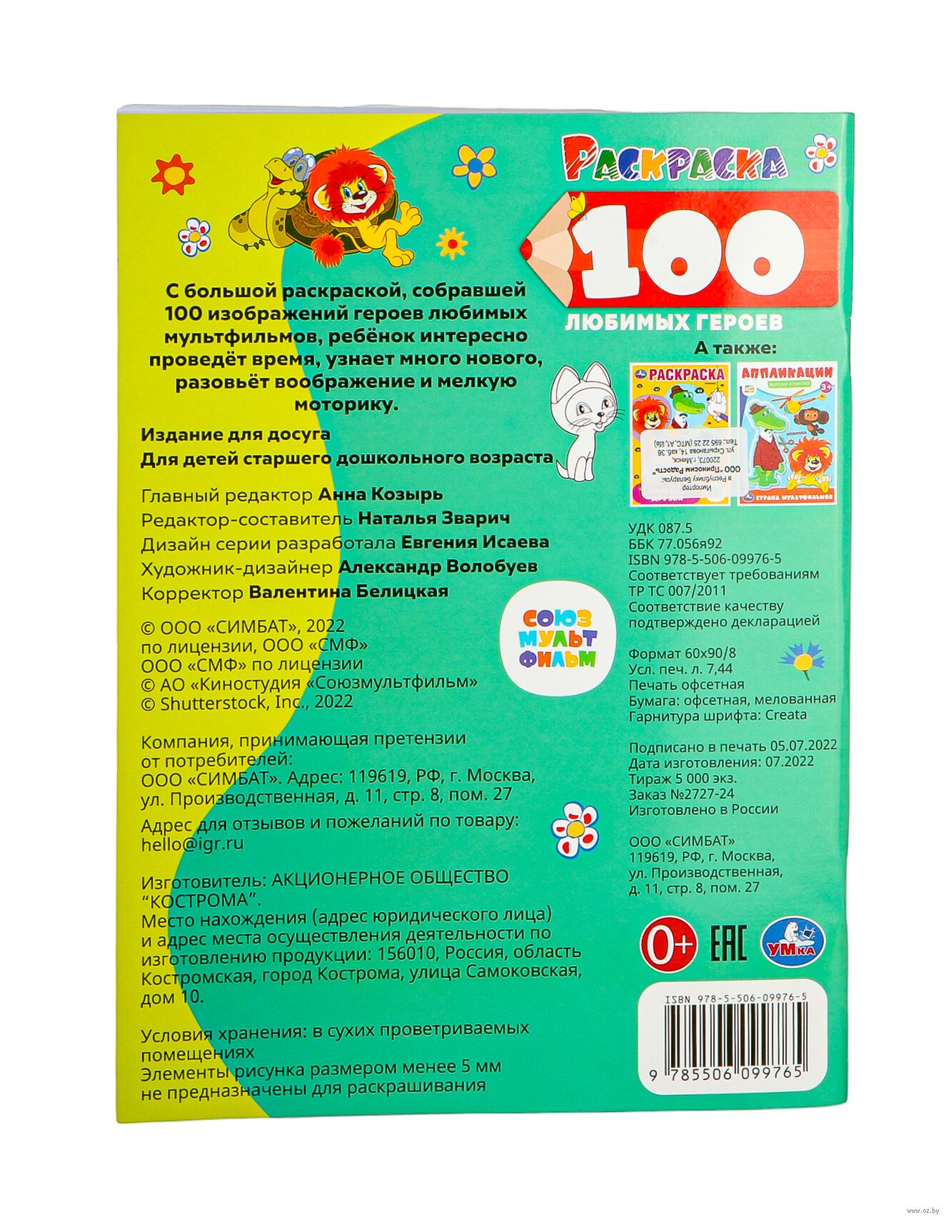 С большой раскраской, собравшей 100 любимых героев, ребенок интересно проведёт время, узнает много нового, разовьёт воображение и мелкую моторику.