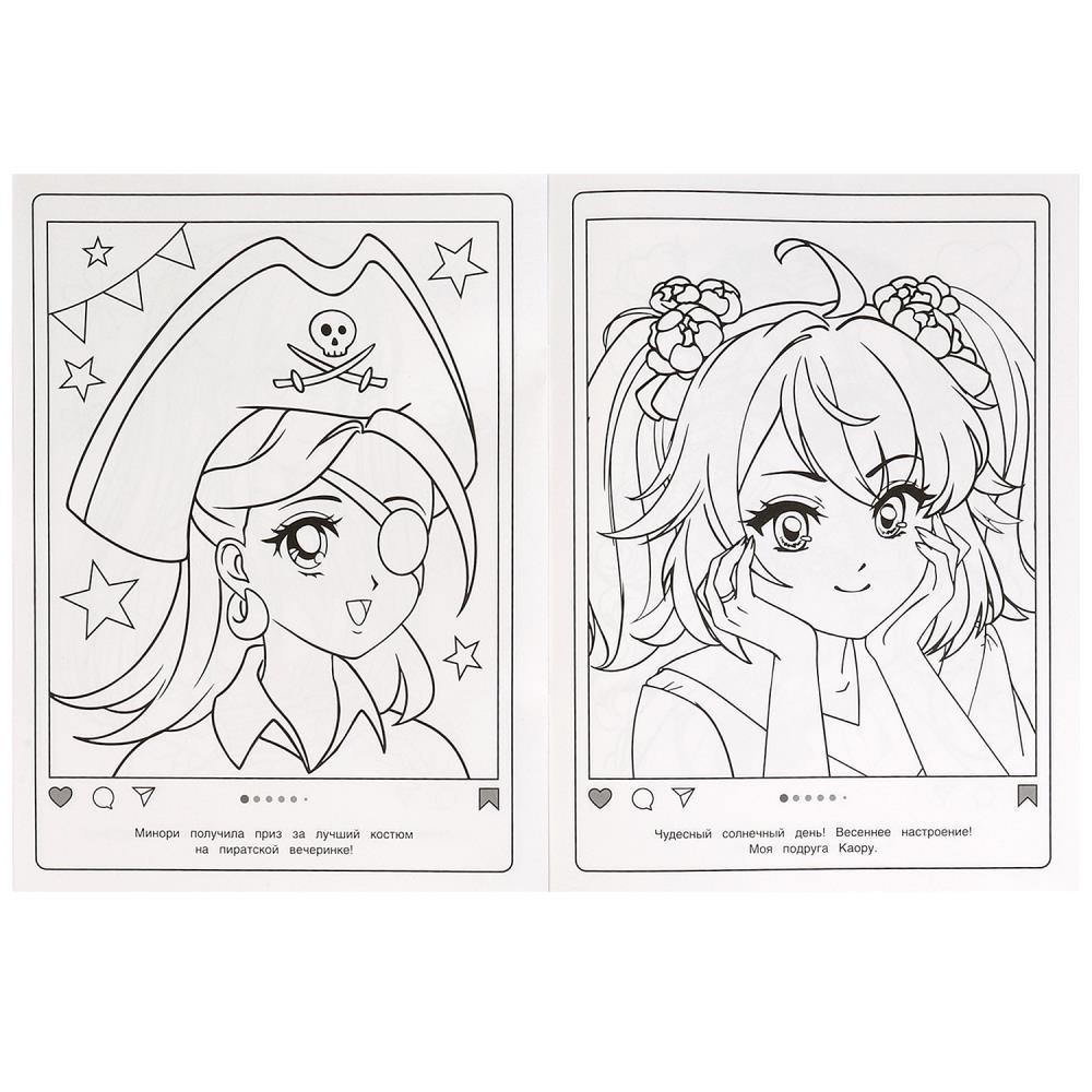 Эта увлекательная раскраска с крупными портретами аниме-персонажей непременно понравится вашему ребёнку. В ней девочка найдёт интересные картинки с чёткими контурами и сюжетными текстами к ним. Благодаря удобному формату раскраску можно взять с собой в дорогу.