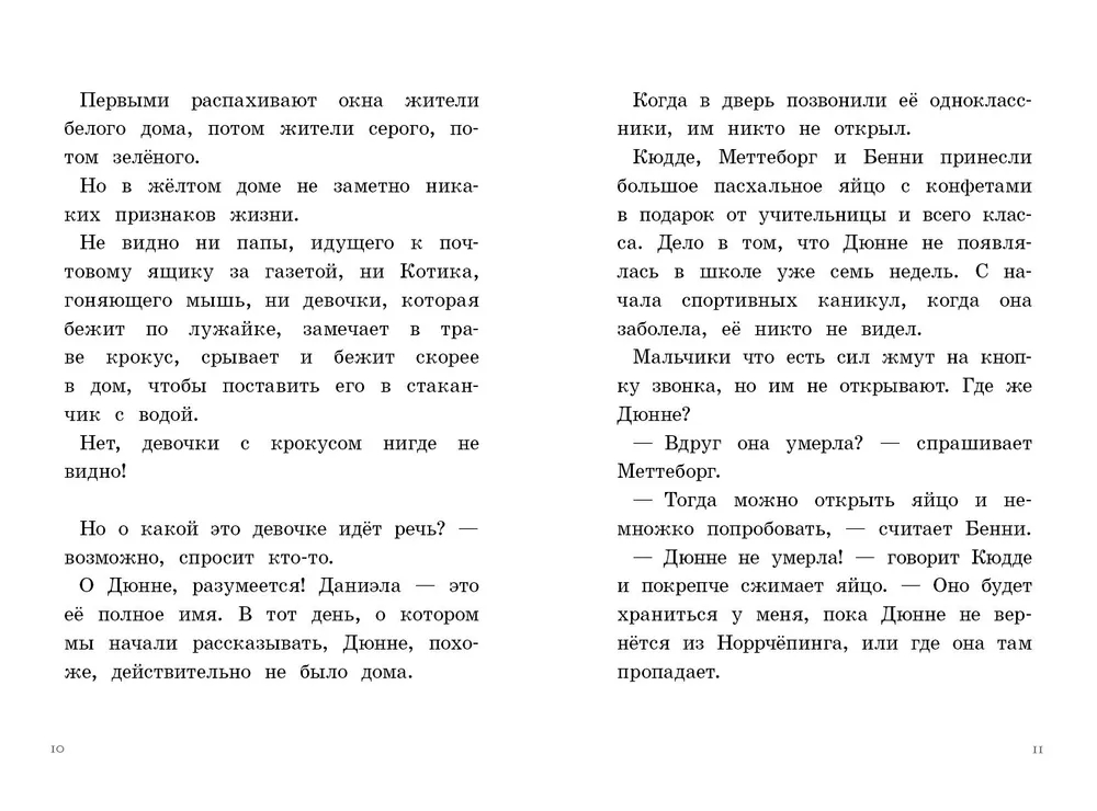 Каникулы давно закончились, а Дюнне так и не появлялась в школе. Никто не открыл дверь, когда одноклассники пришли вручить ей пасхальный подарок. Нет её ни в Норрчёпинге, где живёт её лучшая подруга Элла-Фрида, ни на острове, где они вместе отдыхали прошлым летом... Куда же она пропала?