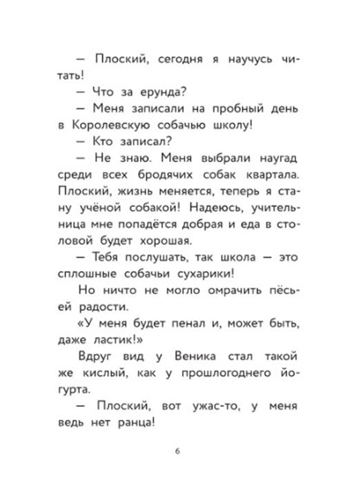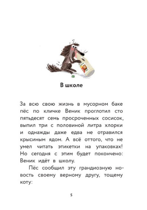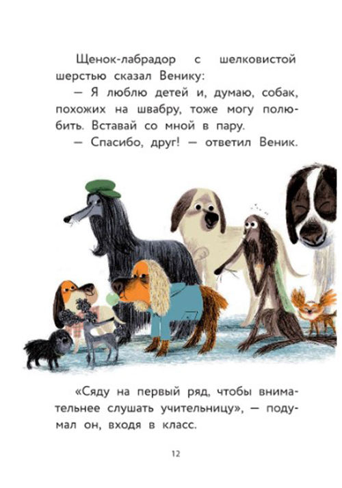 Пёс Веник приглашён в Королевскую собачью школу. Его выбрали наугад, и он по-настоящему счастлив. Даже ранец себе сделал по такому случаю – из целлофанового пакета! Когда ещё дворняжка из мусорного бака сможет научиться читать, а тем более окажется среди таких породистых собак – в плащах-дождевиках и с золотыми поводками! Но даже тут пёс Веник остаётся самим собой – задорным, наивным и немного неуклюжим. И как здорово, что ему решил помочь именно лабрадор, на которого Веник в душе очень похож!