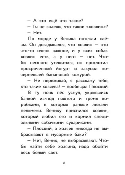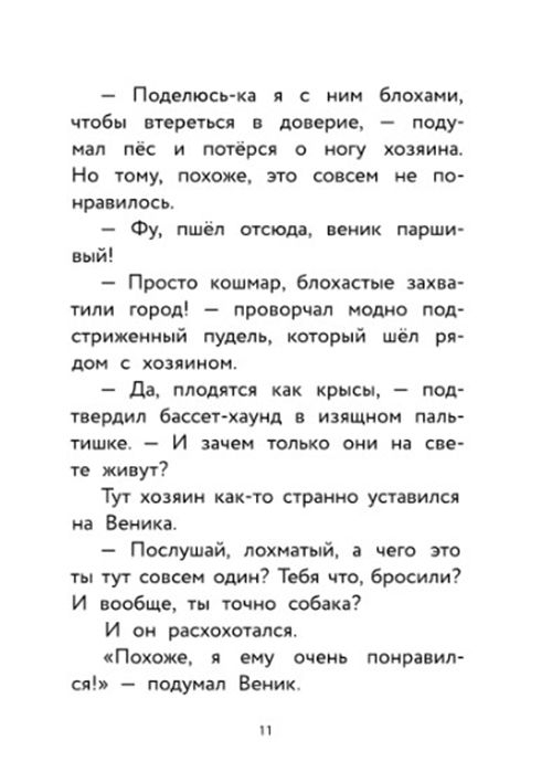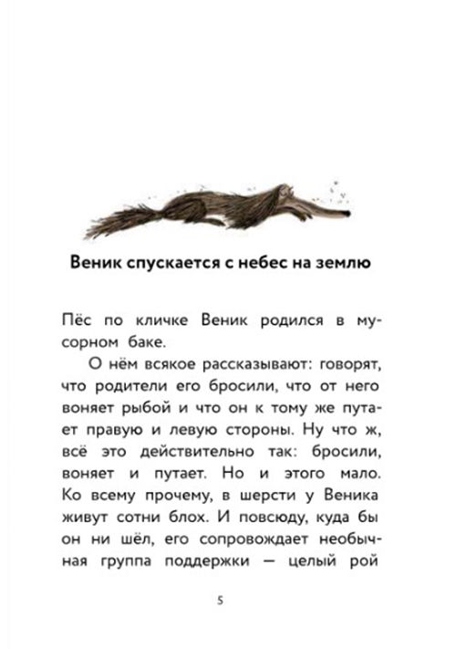 Знакомьтесь: пёс Веник – очаровательный, наивный и нежный! Да, он родился в мусорном баке и слегка похож на швабру. Но не стоит судить по внешности. Сам Веник считает себя лабрадором, ведь он так любит детей. И так хочет найти себе друзей! И пусть вначале он ошибается и готов отправиться за первым встречным человеком, бросившим ему: "Пойдём со мной". К концу книги он обязательно разберётся, кому можно доверять и с кем стоит дружить.