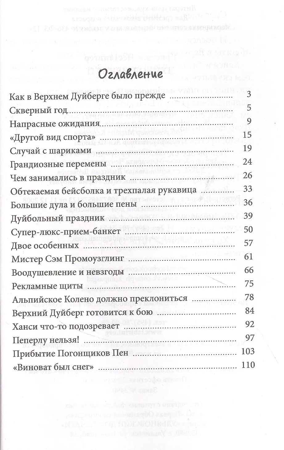 Кто спасёт городок? Конечно, дети! Они-то не скучают без снега: знай себе играют в дуйбол – гоняют ватные шарики по столу, дуя на них изо всех сил. "Вот это да!" – восклицает бургомистр и превращает дуйбол в новый вид спорта. Крохотные ватные горошинки разрастаются и становятся большими легкими как пух мячами. Стол заменила просторная поляна между гостиницей и трактиром, а четверо пыхтящих ребят оказались тренерами для зимних туристов с суперфенами. Обхвати покрепче фен, направь на большой пенопластовый мяч и докати его до финишной черты первым! Эта нехитрая забава переворачивает привычную жизнь с ног на голову: соревнования гремят на всю округу и далеко за её пределами. Туристов в Дуйберге теперь хоть отбавляй, и среди них – репортёры, фотографы, даже один миллионер! Но чем это обернётся для некогда мирной деревни, пока неясно...