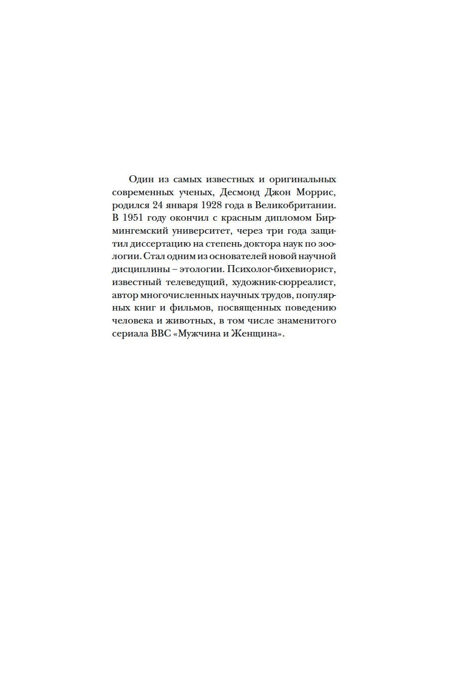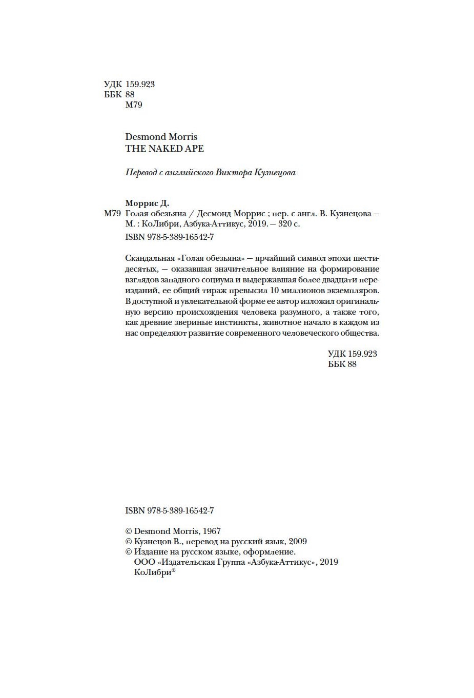 Скандальная "Голая обезьяна" – ярчайший символ эпохи шестидесятых, – оказавшая значительное влияние на формирование взглядов западного социума и выдержавшая более двадцати переизданий, ее общий тираж превысил 10 миллионов экземпляров. В доступной и увлекательной форме ее автор изложил оригинальную версию происхождения человека разумного, а также того, как древние звериные инстинкты, животное начало в каждом из нас определяют развитие современного человеческого общества.