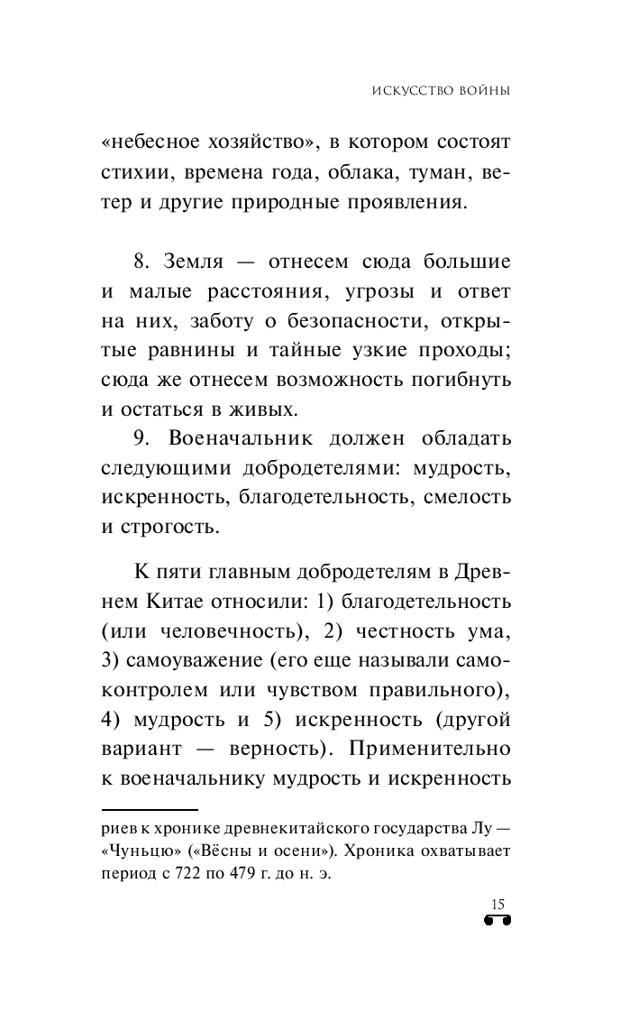 "Искусство войны" Сунь-цзы – древний китайский трактат, созданный около V века до нашей эры и ставший одной из основополагающих работ по стратегии и тактике ведения войны. Этот труд, состоящий из 13 глав, охватывает различные аспекты военного искусства и применим не только в контексте военных действий, но и в сферах бизнеса, политики и управления.