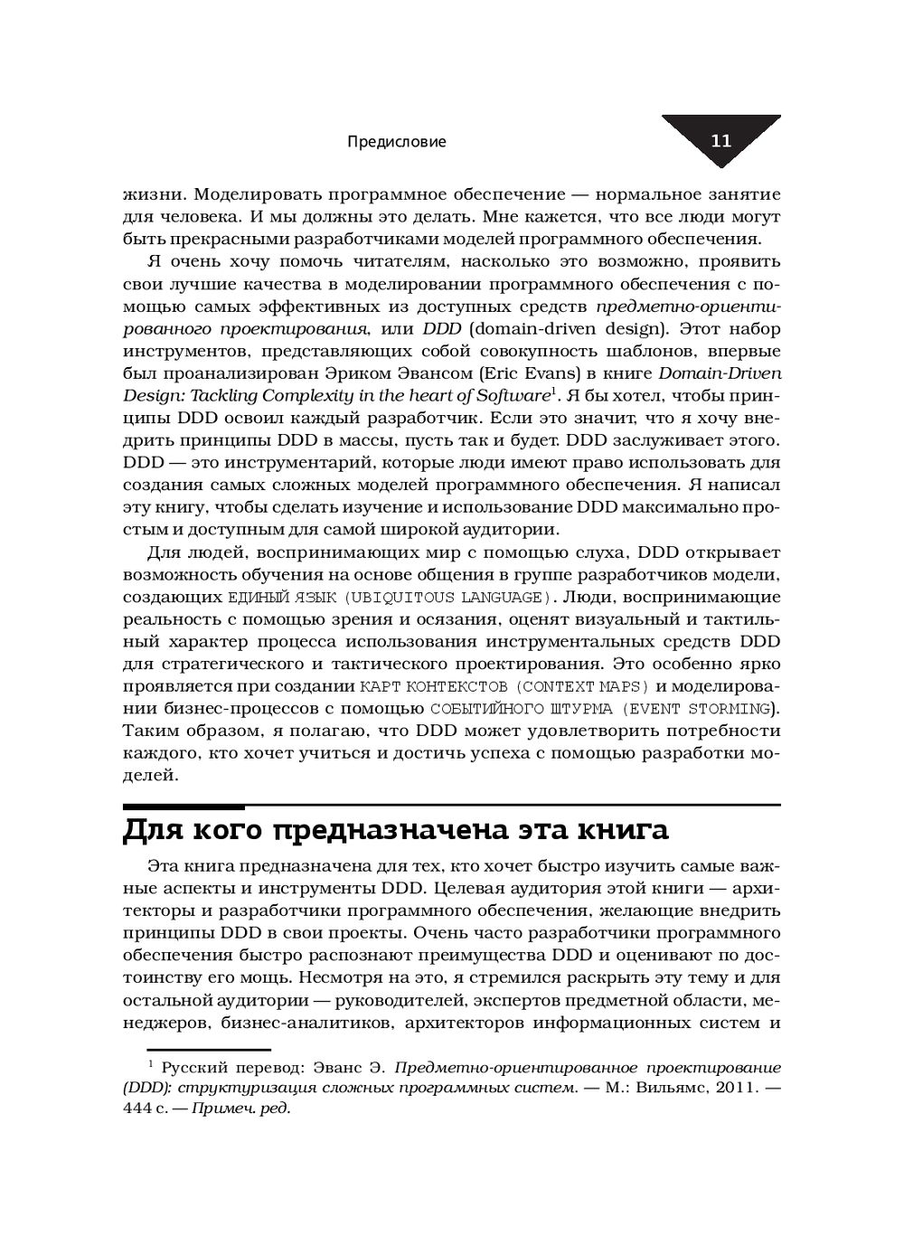 Создание моделей программного обеспечения с помощью предметно-ориентированного проектирования (DDD) принесло много впечатляющих результатов не только в теории, но и на практике. Именно поэтому разработчики во всем мире с энтузиазмом приступили к адаптации DDD. Книга представляет собой краткий справочник по основам DDD. В ней вы найдете ответы на вопросы: "Что собой представляет DDD, какие проблемы он решает, как работает и как быстро приносит результаты?"