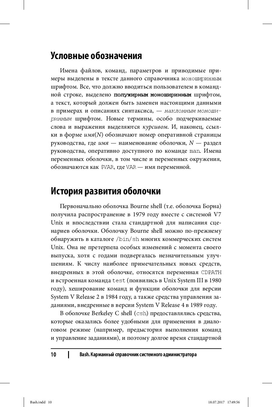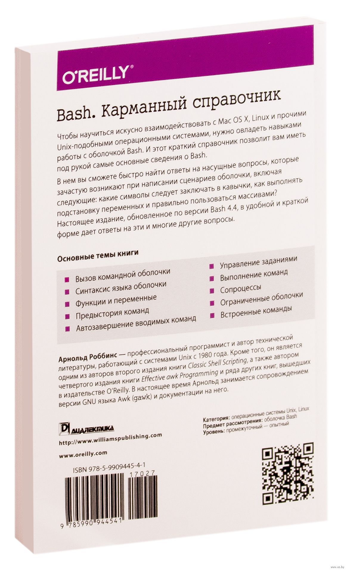 В нем вы сможете быстро найти ответы на насущные вопросы, которые зачастую возникают при написании сценариев оболочки, включая следующие: какие символы следует заключать в кавычки, как выполнять подстановку переменных и правильно пользоваться массивами? Настоящее издание, обновленное по версии Bash 4.4, в удобной и краткой форме дает ответы на эти и многие другие вопросы.