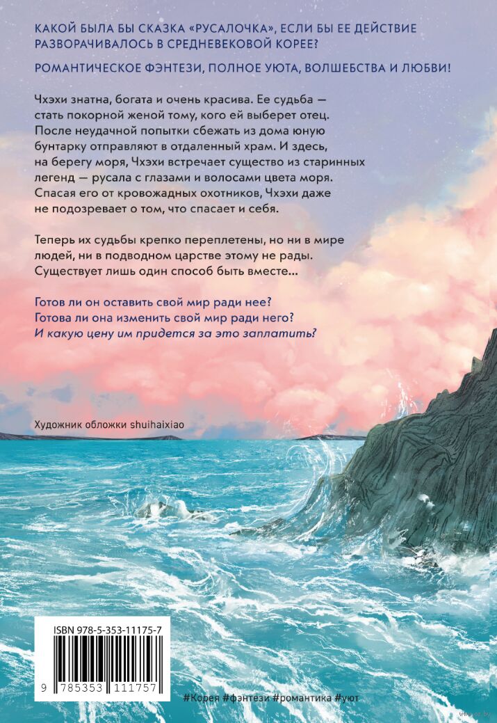 Какой была бы сказка "Русалочка", если бы ее действие разворачивалось в средневековой Корее?.. В наказание за побег из дома перед свадьбой отец отправляет юную Чхэхи в отдаленный храм. Ее удел – смириться перед уготованной ей судьбой, но девушка вновь бросает вызов всем устоям. На берегу моря она находит попавшее в ловушку создание из древних легенд – юного русала с глазами и волосами цвета моря. Спасая его, Чхэхи даже не подозревает о том, что спасает и себя. Теперь их судьбы крепко переплетены, но ни в мире людей, ни в подводном царстве этому не рады. Существует лишь один способ быть вместе, но хватит ли влюбленным смелости и сил пройти этот путь до конца?