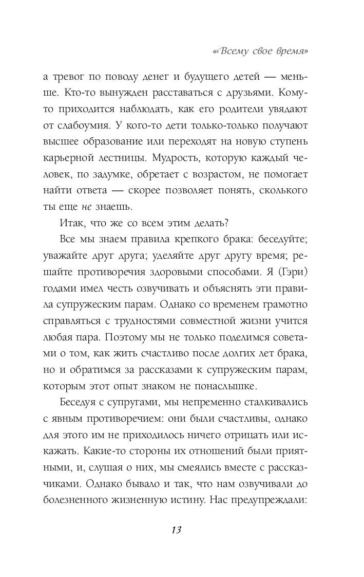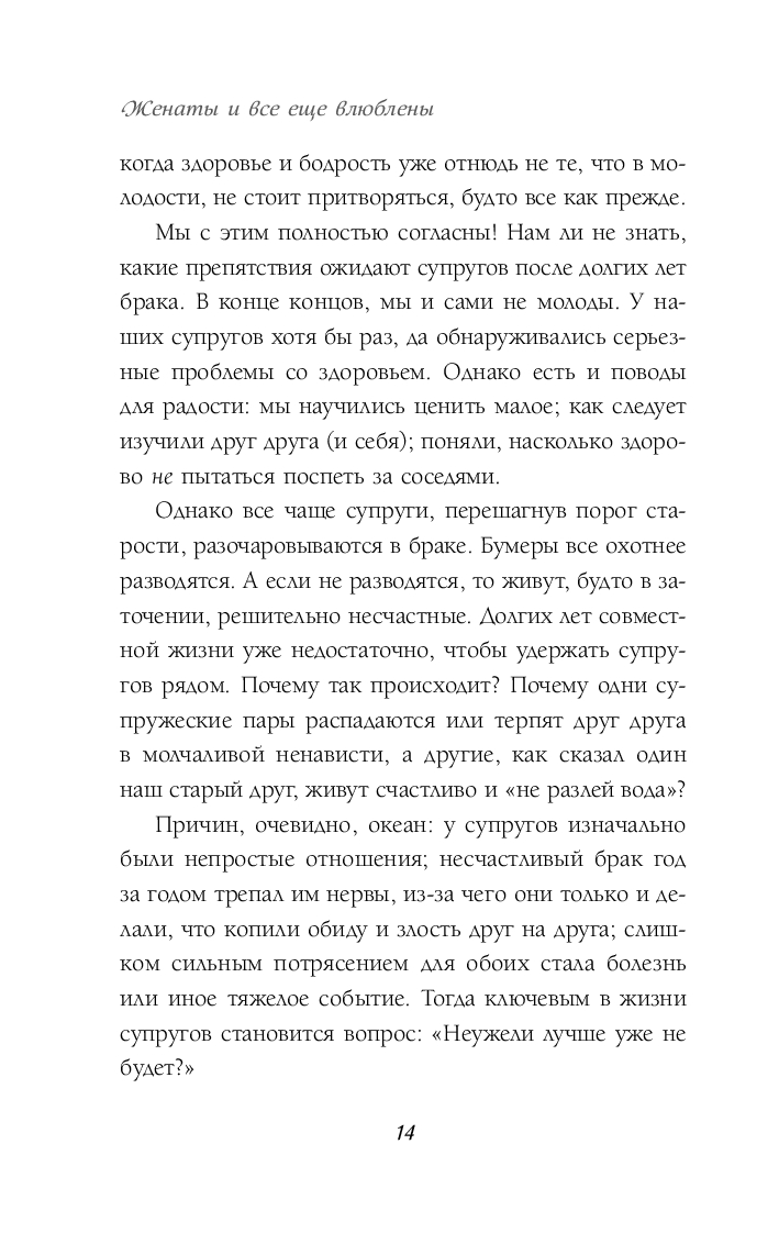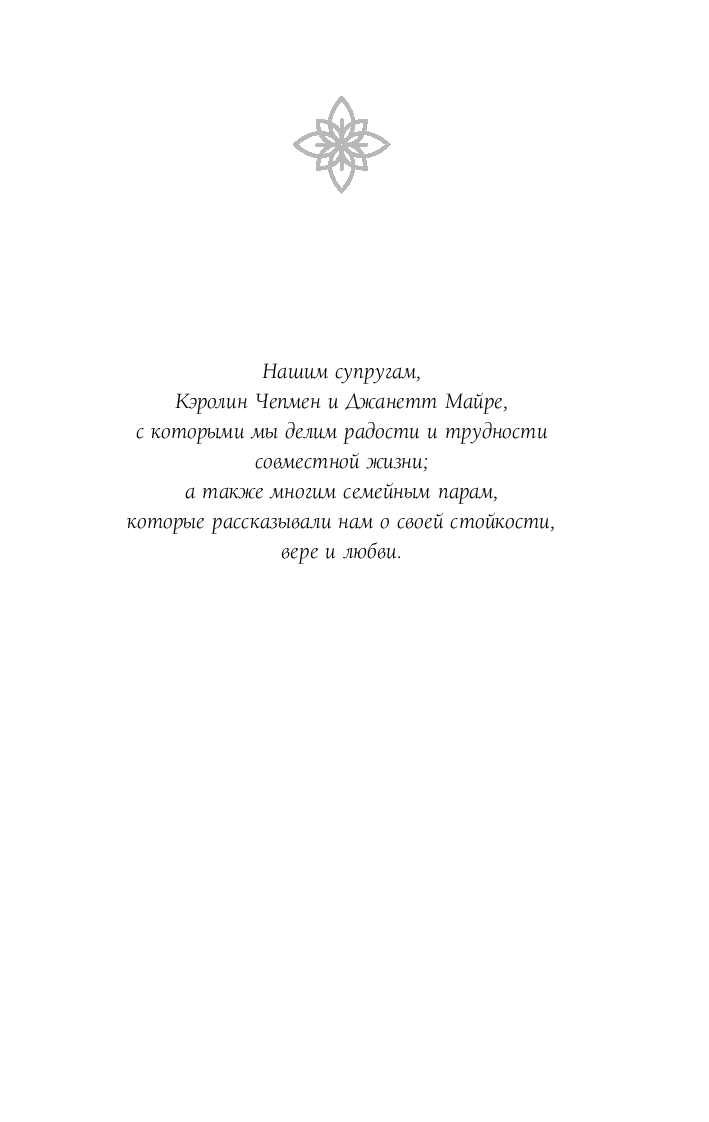 Эксперт по семейным отношениям с 40-летним стажем Гэри Чепмен в соавторстве с Гарольдом Майра написали книгу для тех, кому жизнь подарила лучший на свете подарок – долгий брак. Впрочем, этот подарок – не всегда такая уж легкая история. Тревоги по поводу взрослых детей, забота о деньгах и здоровье, отсутствие общих тем для разговора могут бросить вызов даже самым крепким отношениям. Книга подскажет вам, как пронести интерес друг к другу сквозь года, вдохновит на совместные приключения и поможет вспомнить, что же это за чувство такое – влюбленность.