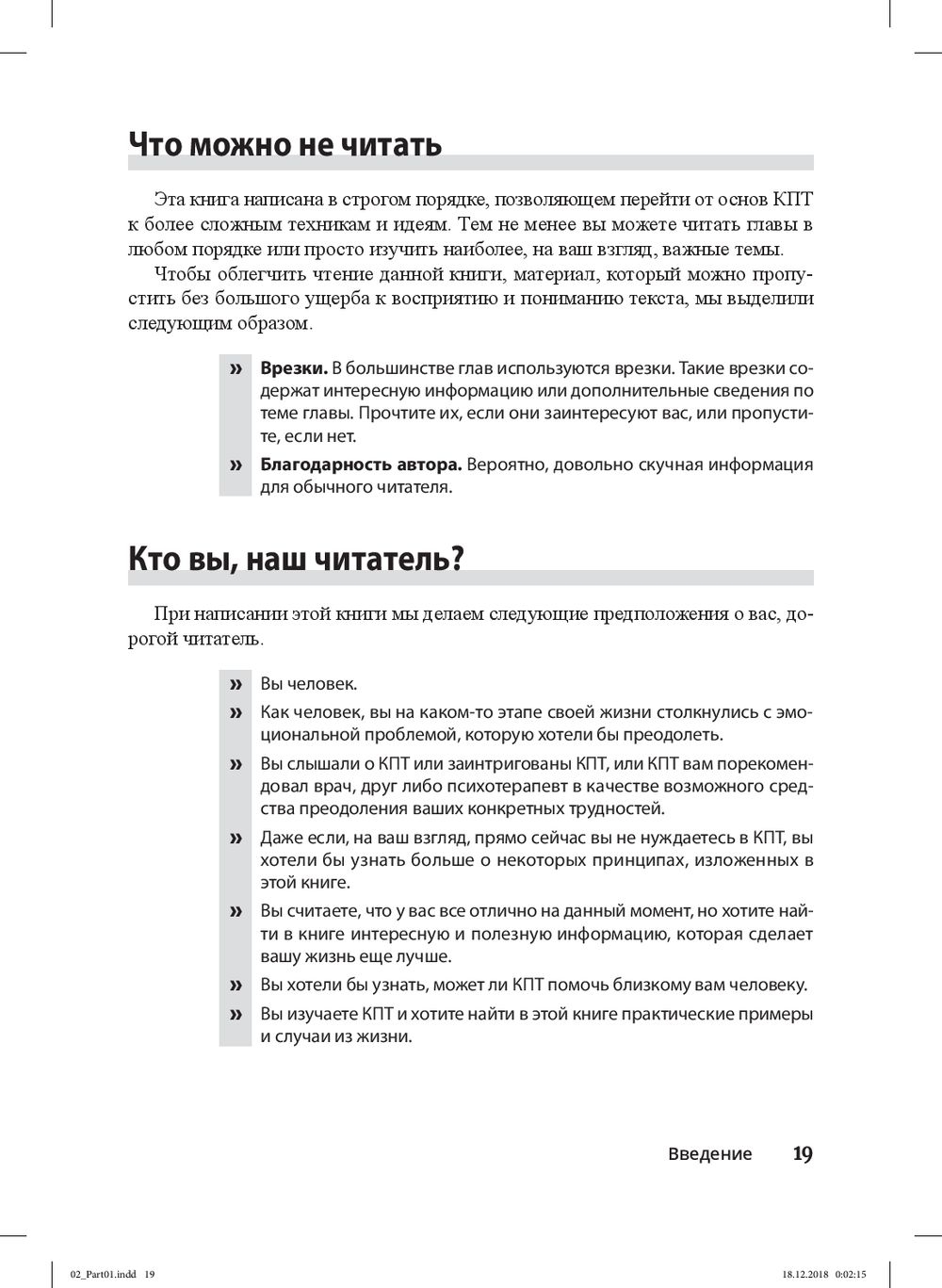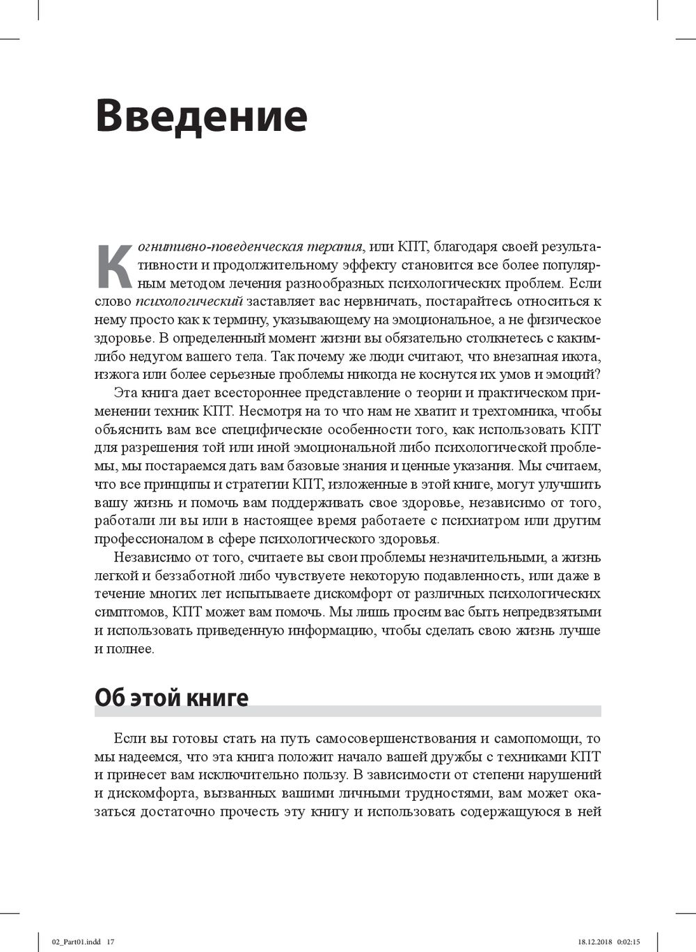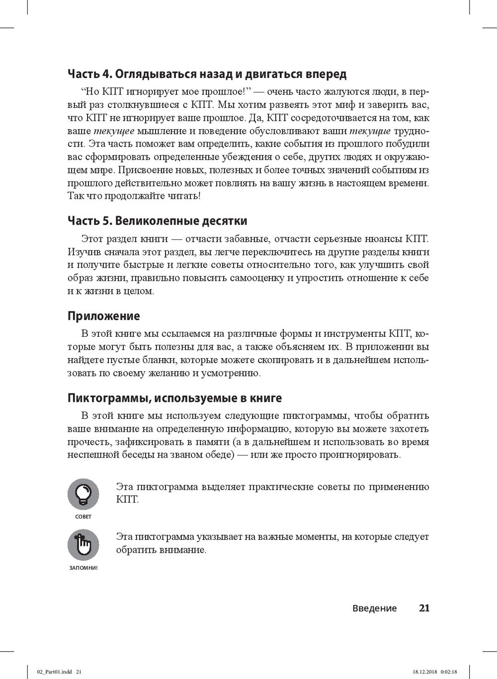 В книге рассказывается, как это следует делать. Рассказ сопровождается многочисленными примерами из жизни, помогающими закрепить полученные знания на практике. Книга будет полезна людям, которые посещают сеансы КПТ, а также всем, кто интересуется психологией и психотерапией.