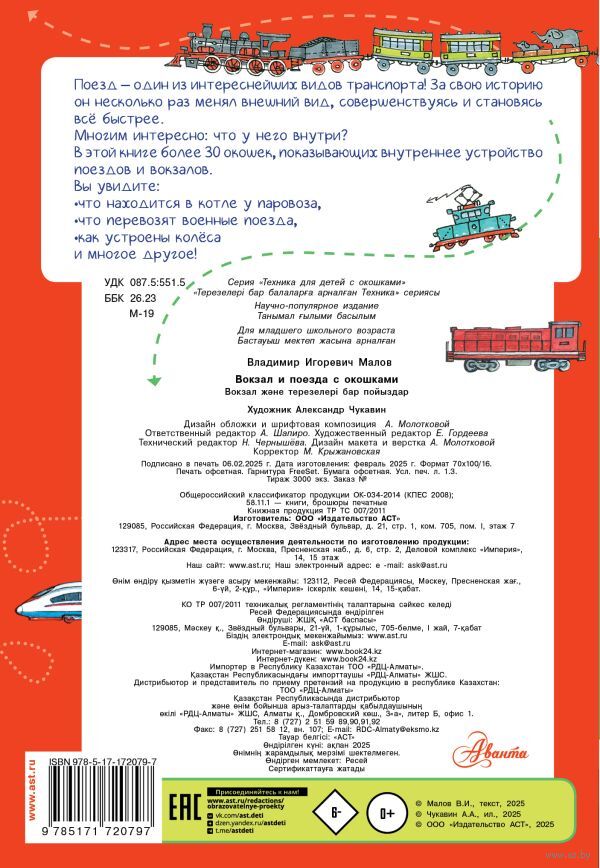 Узнайте, как устроен вокзал, что происходит в кабине машиниста, как готовят поезд к отправлению и многое другое. Каждое окошко – это новый шаг в мир удивительных открытий. Яркие иллюстрации и простые объяснения сделают чтение этой книги настоящим удовольствием для детей и их родителей.